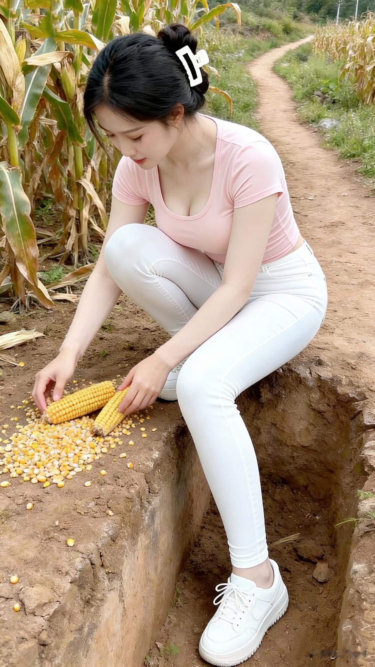 《农陌收秫》 云鬟簪玉夹,粉袂拂秋禾。 素手攀苞熟,纤腰向陇坡。 石矶闲坐处,水盏伴藤箩。 回望金波涌,农人荷耜歌。 蹲身剥珠粒,碎响落泥窝。 野径风微暖,山田景自多。 不贪闺阁静,偏爱稼穑和。 岁岁收成好,村墟乐事蹉。