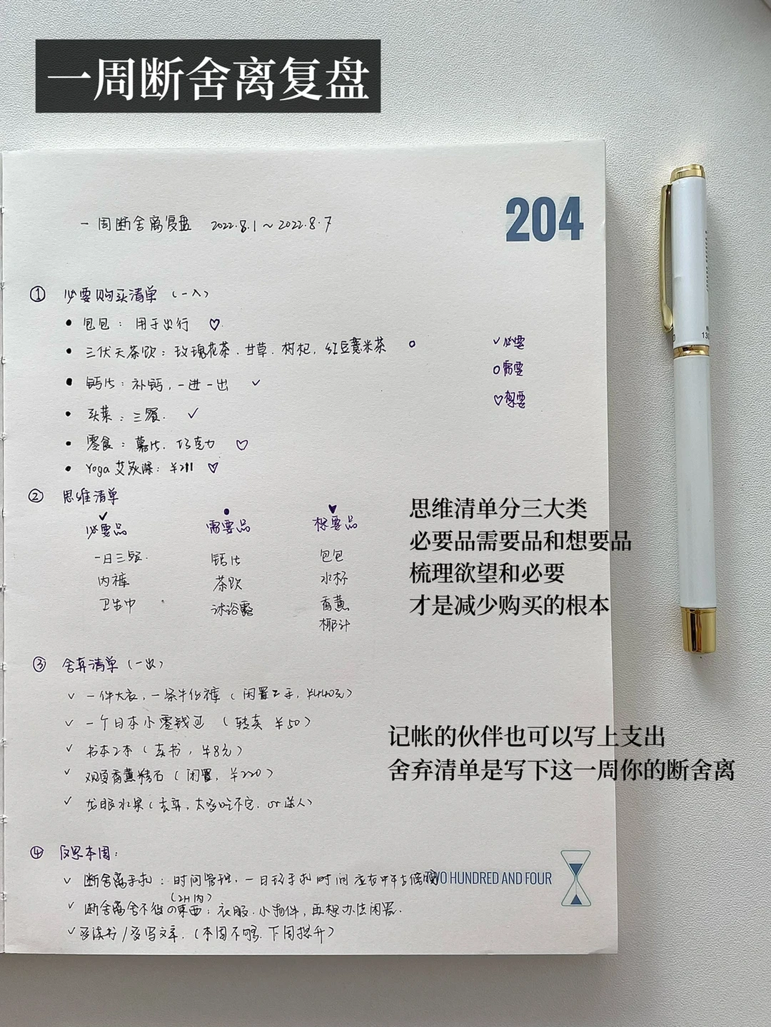 今天是八月的第1⃣️个周末,趁着休息时光,来个一周断舍离复盘 ,结合我五年的手帐经验,发现下面的步骤能让我们反思支出与收入的一周结果,让断舍离可视化,极简生活即日可待。