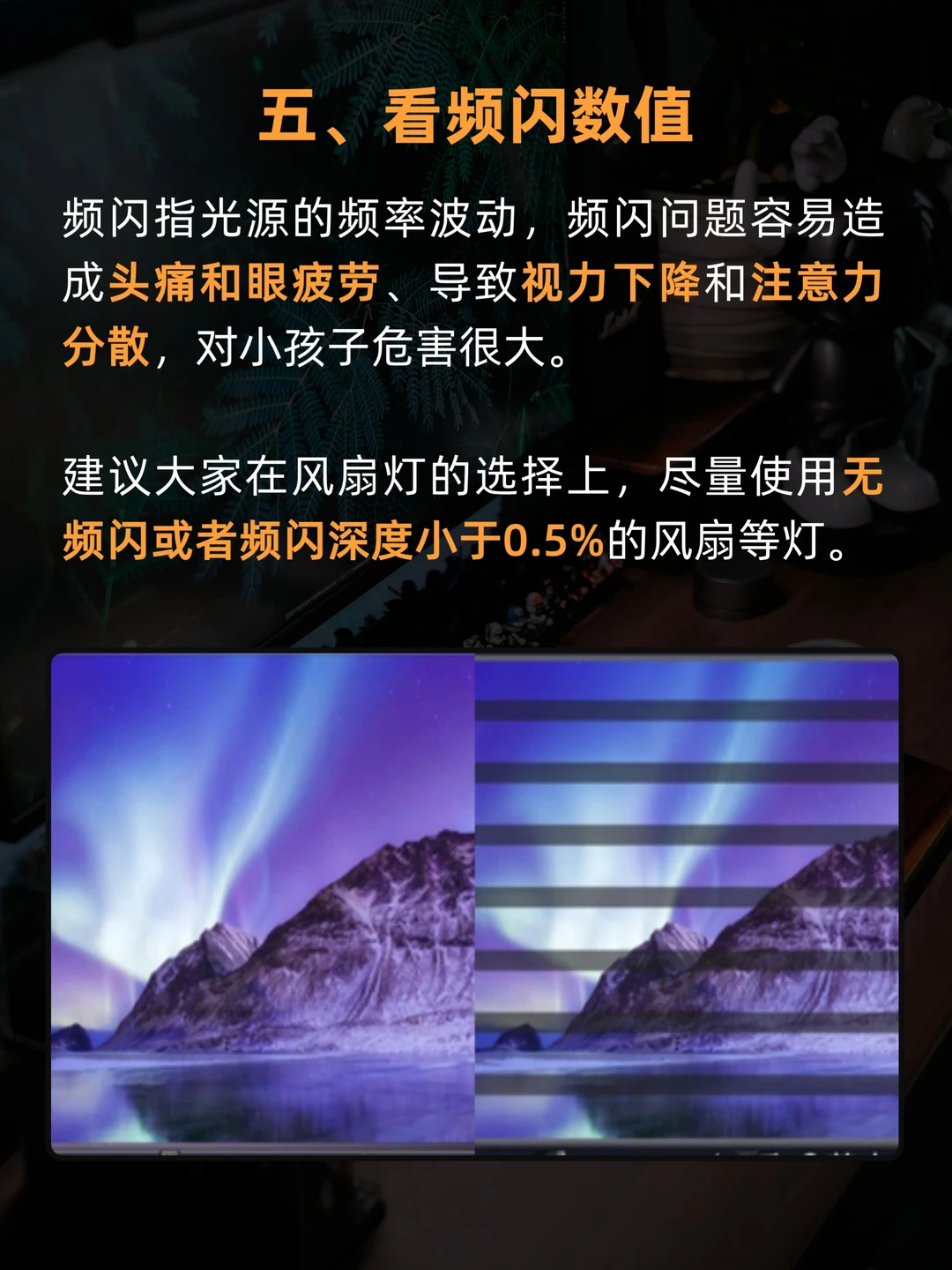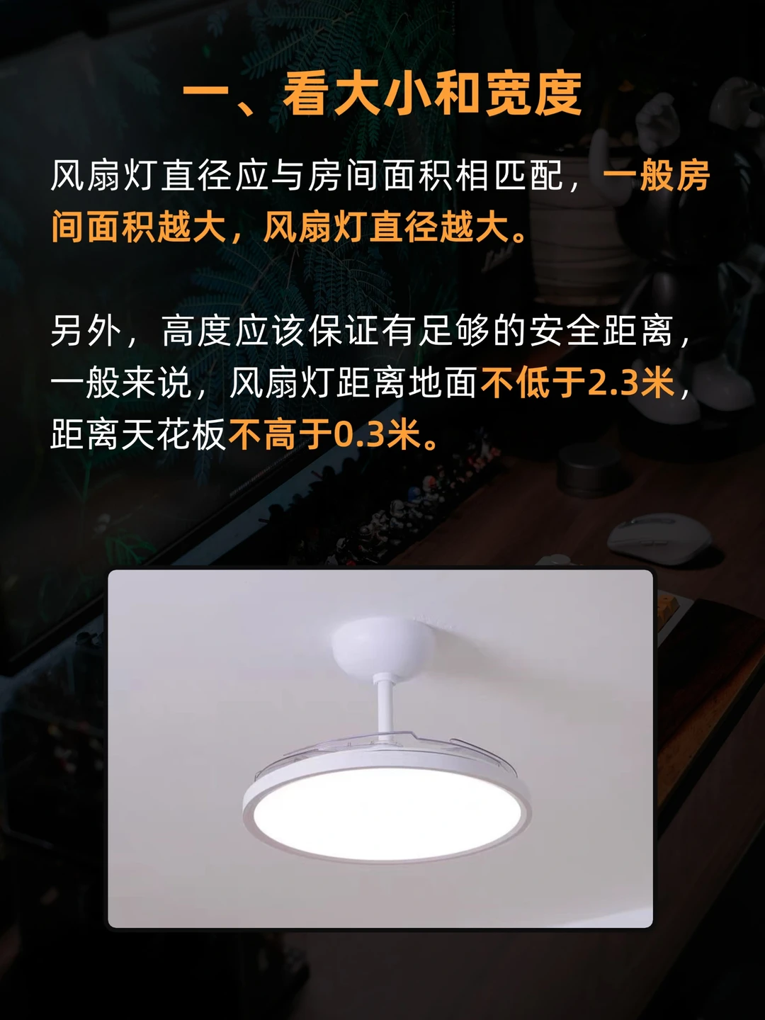 但也有很多人说风扇灯不实用,容易踩雷,比如光线不好,声音太吵,不安全,伤眼睛等,今天来讲讲选风扇的6大标准🤩