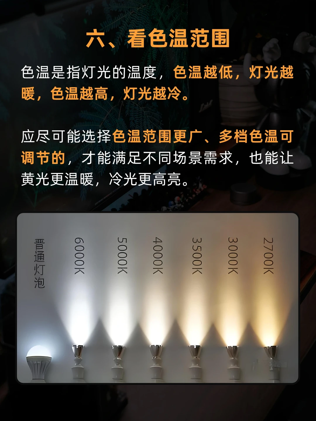 👉🏻暖、中性、冷三色光和无极调光,可随意调节,色温范围更广
