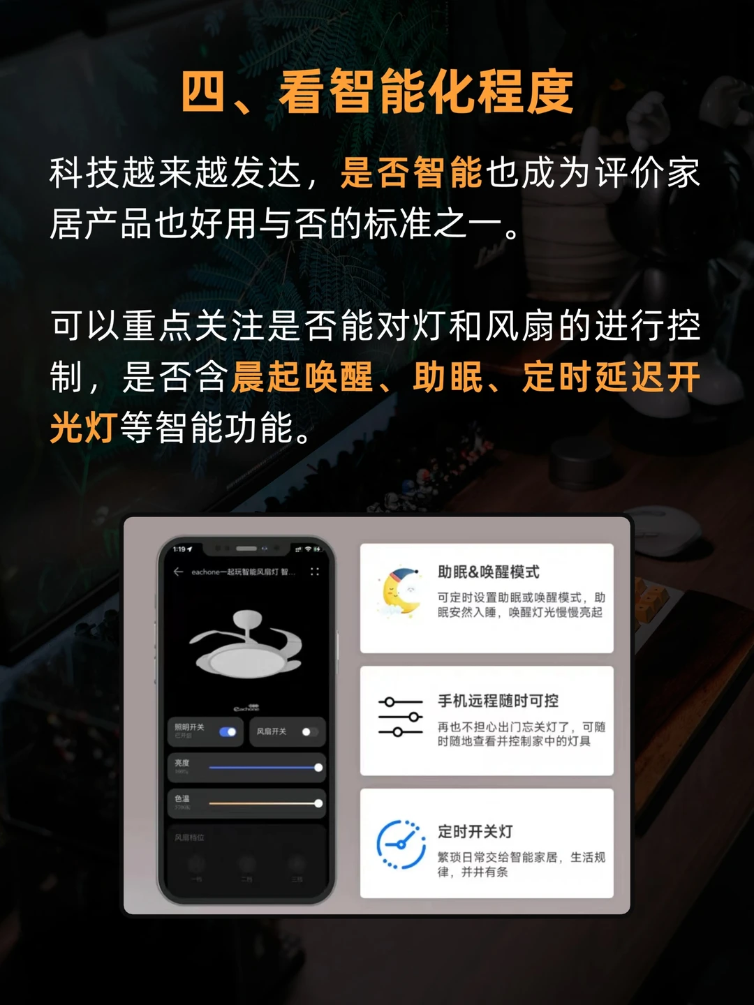 👉🏻可通过APP对灯和风扇进行控制,有唤醒助眠等智能功能