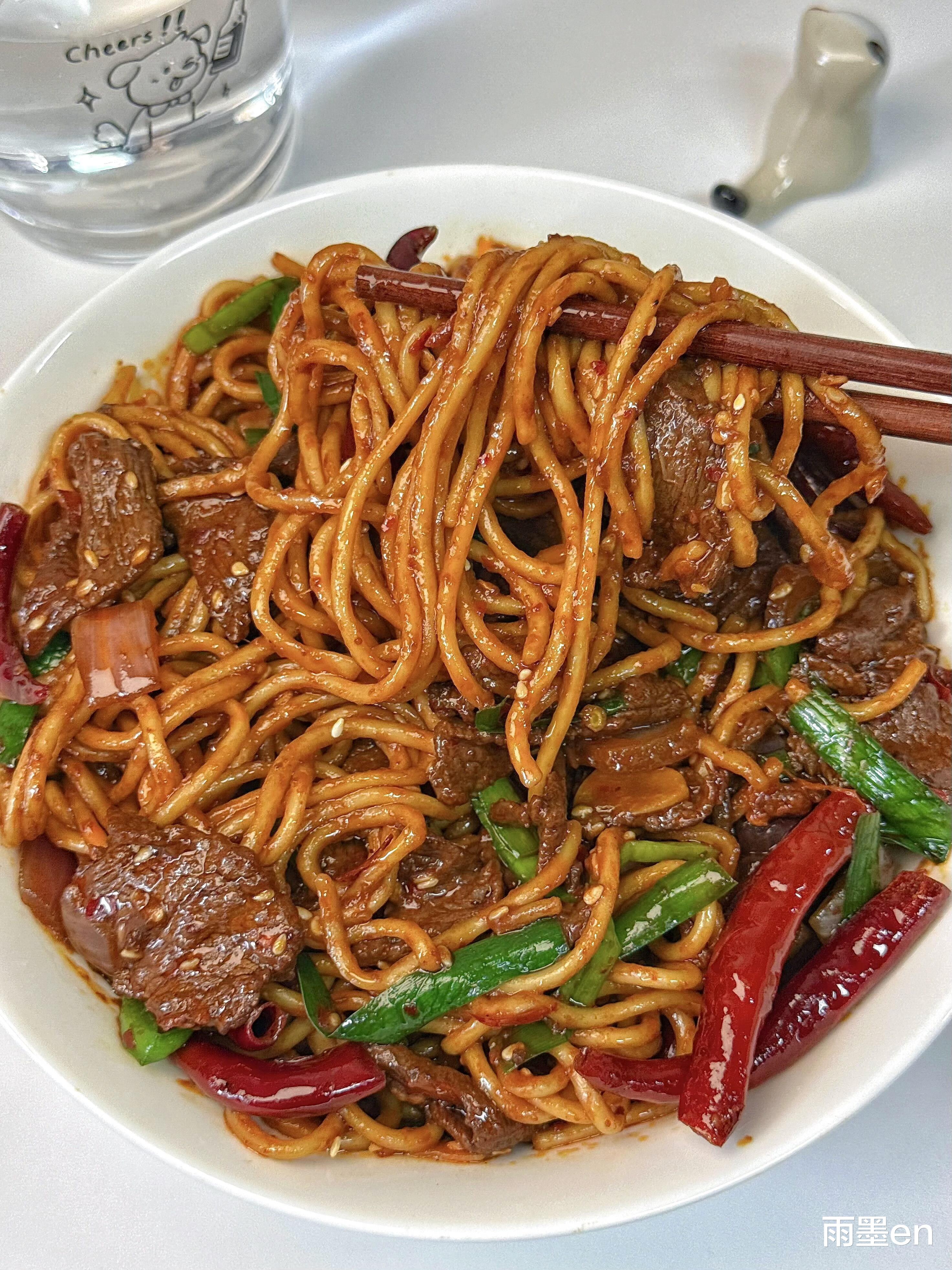 3. 干煸锁脆香:面条入锅要像炒沙子般快速翻炒,让每根面都均匀裹上油光。沿锅边淋生抽老抽,撒盐糖辣椒面,最后下洋葱青椒丝——这时候要转大火,让蔬菜的水分瞬间蒸发,只留脆嫩和香气。整个过程不超过5分钟,快得像一阵风,却能炒出记忆里的味道。