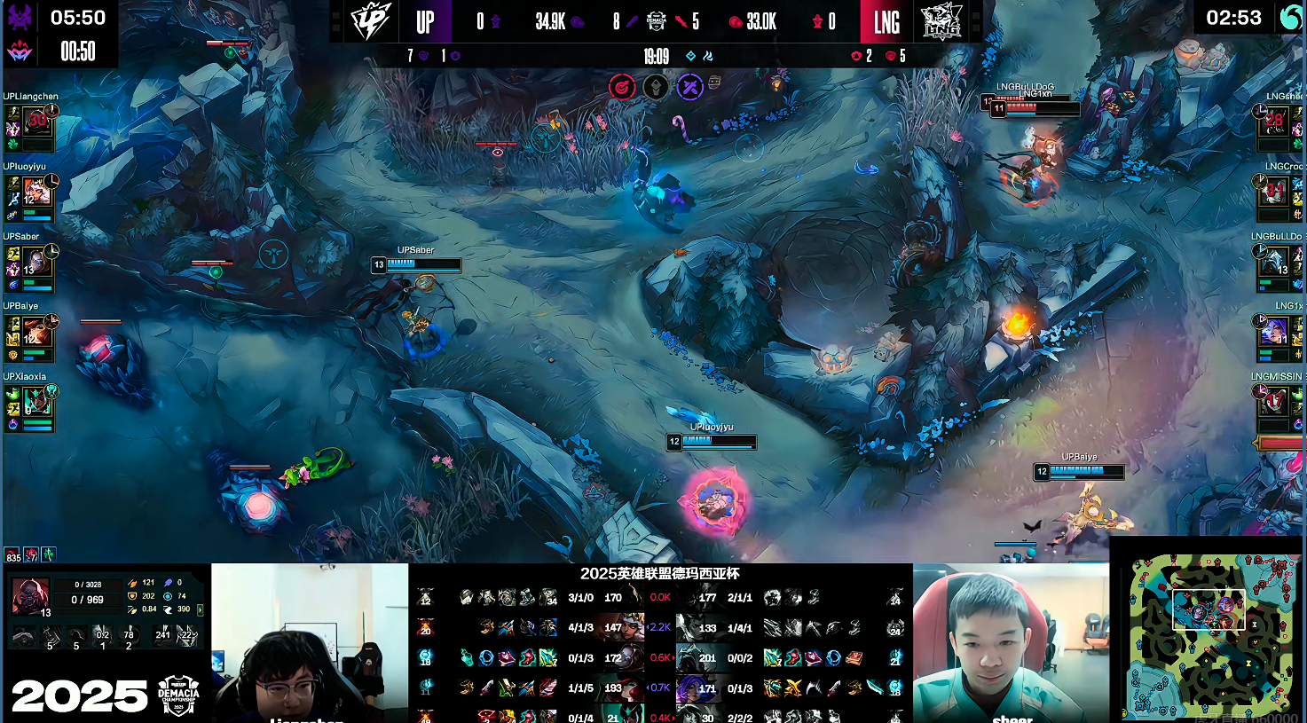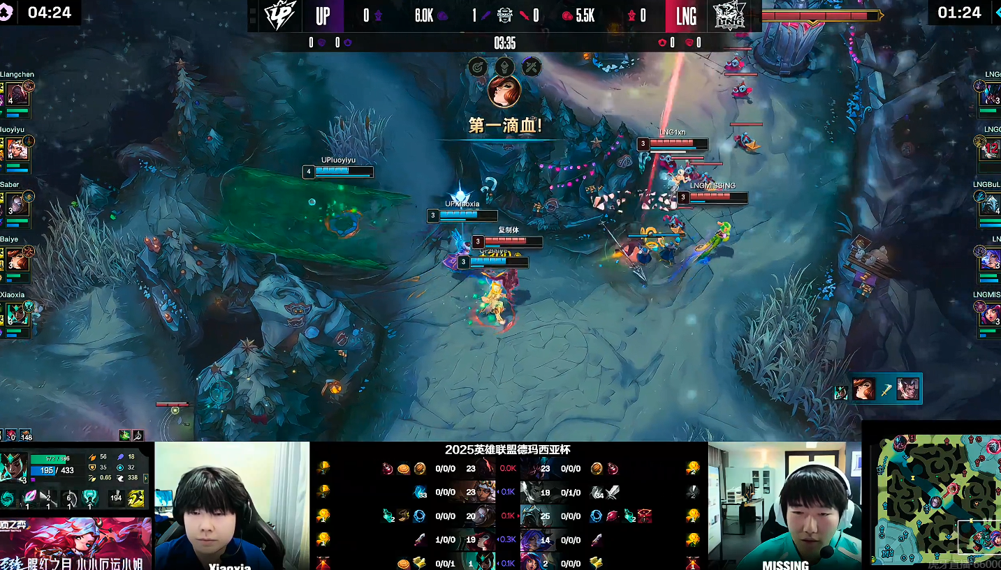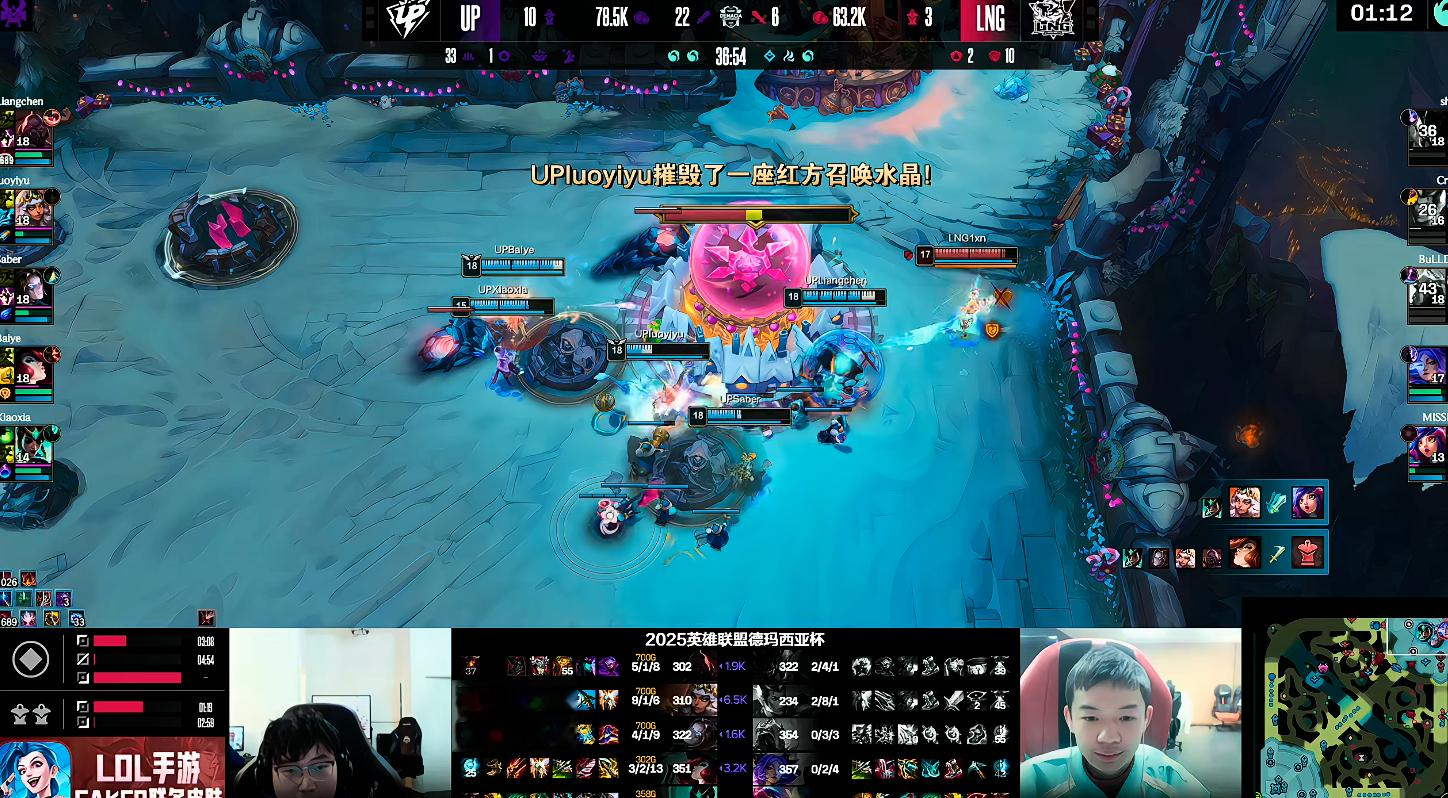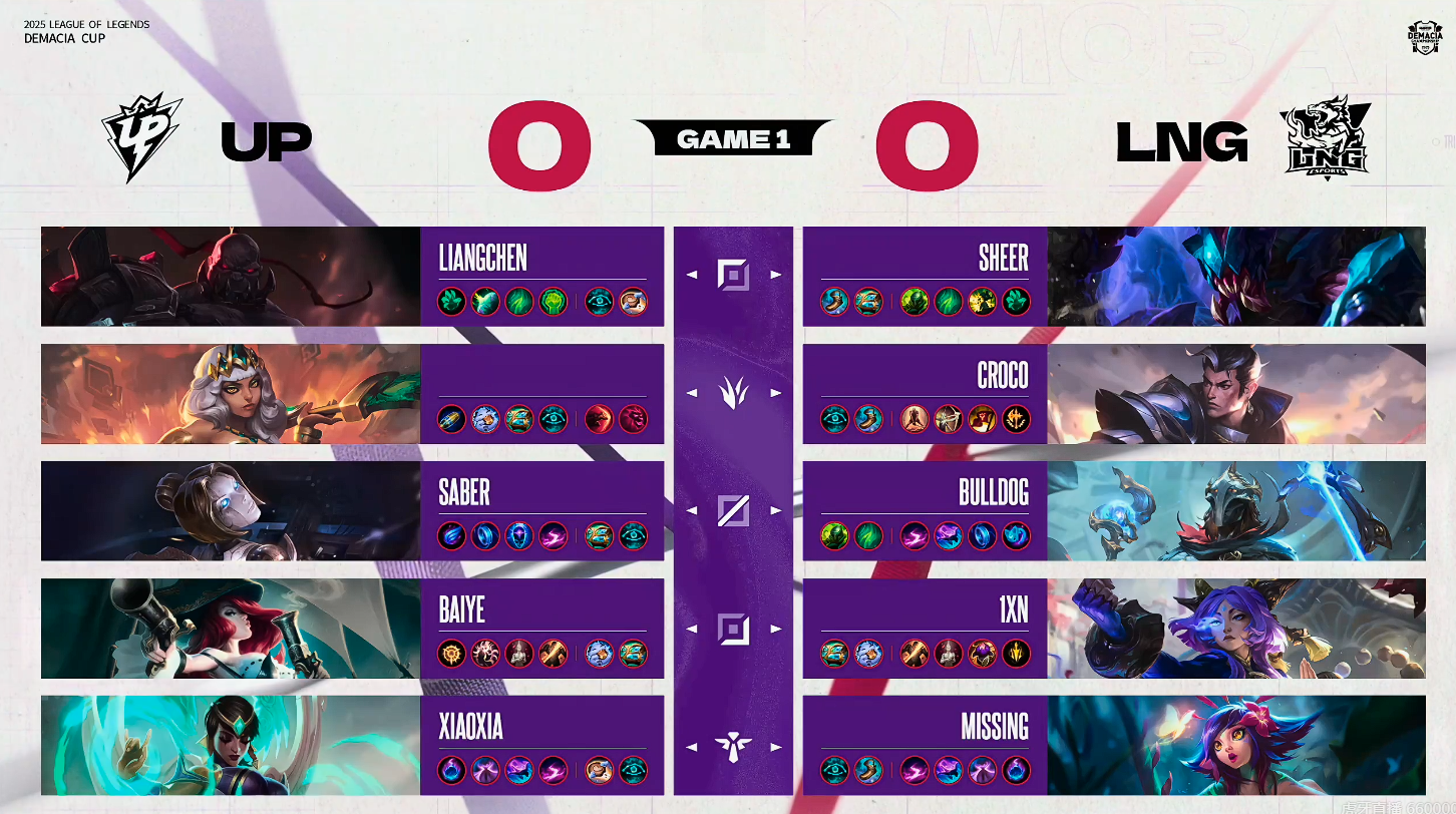 虎扑12月15日讯[GAME1]UP蓝色方、LNG红色方