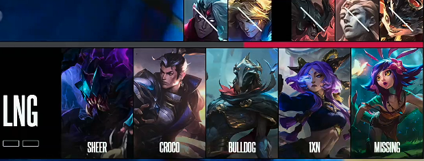 LNG选用:sheer雷克塞、Croco赵信、BullDoG维克托、1xn芸阿娜、Missing妮蔻