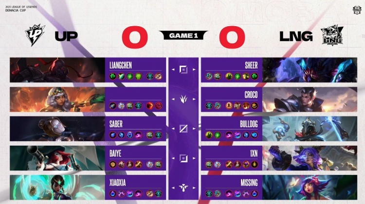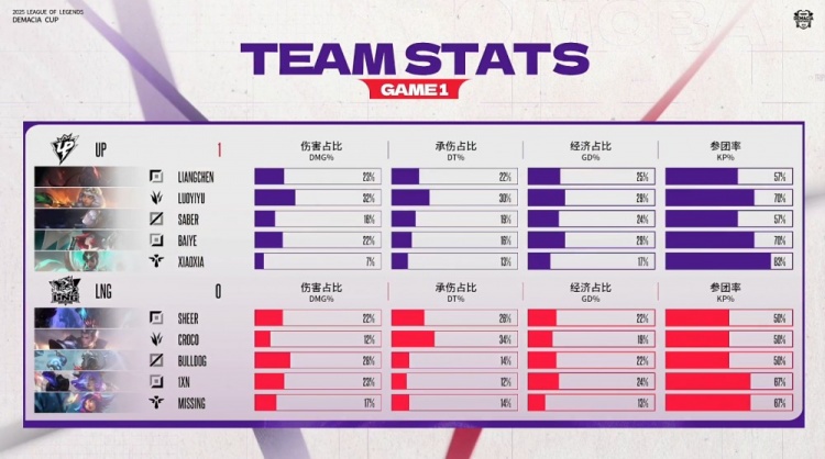 此后因为UP自身原因未能在官方预定开赛时间前进入就绪状态,UP被判1-2不敌LNG!