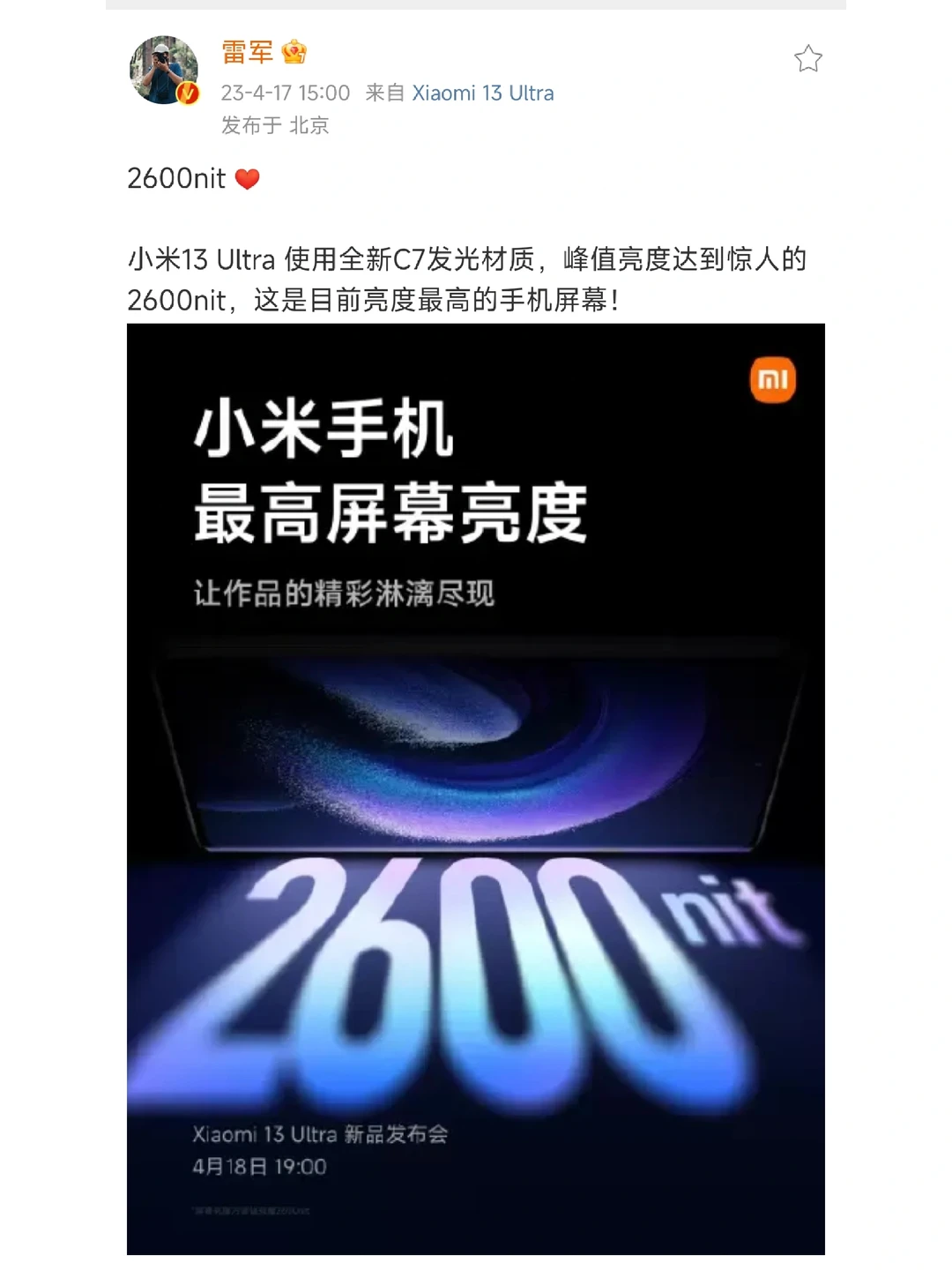 以前国产屏幕PK三星屏幕,要么说亮度,要么说护眼,但这一次小米联合华星光电带来了一次真全面超越,从可视角度、亮度、发光效率、功耗来了一个里程碑式的升级。屏幕的峰值亮度甚至达到2600nit,什么概念?三星E6也才1900。