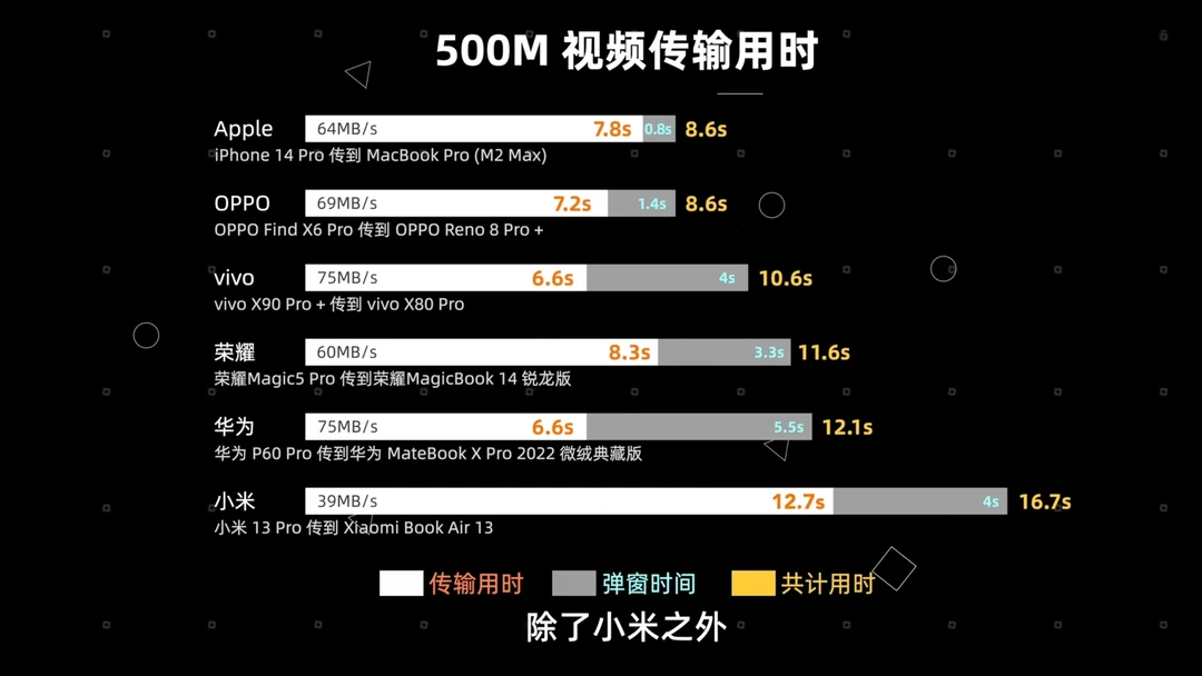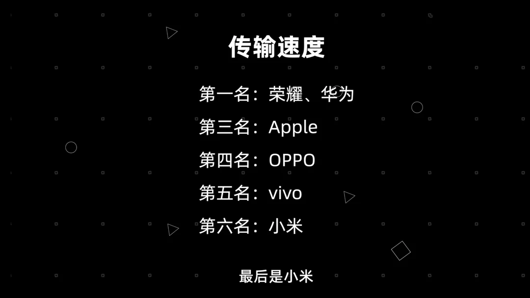 六大品牌手机互联,苹果只能算第三,谁表现好?李大锤测试结果出乎意料。手机互联是将手机里的图片、文件、文字很方便很快捷地传输到电脑或其他手机里,我敢说这是用过就回不去的功能,结果这个功能体验最好的是荣耀和华为,传输速度最快的也是荣耀和华为,再后面才是苹果。荣耀手机在传输响应速度和传输速度上都具备足够优势,底层技术可见一斑。手机互联是一项非常重要的功能,希望各厂家也重视起来,同时作为一个数码博主,衷心希望荣耀和华为还有苹果与MOV能尽快开通手机的互传!