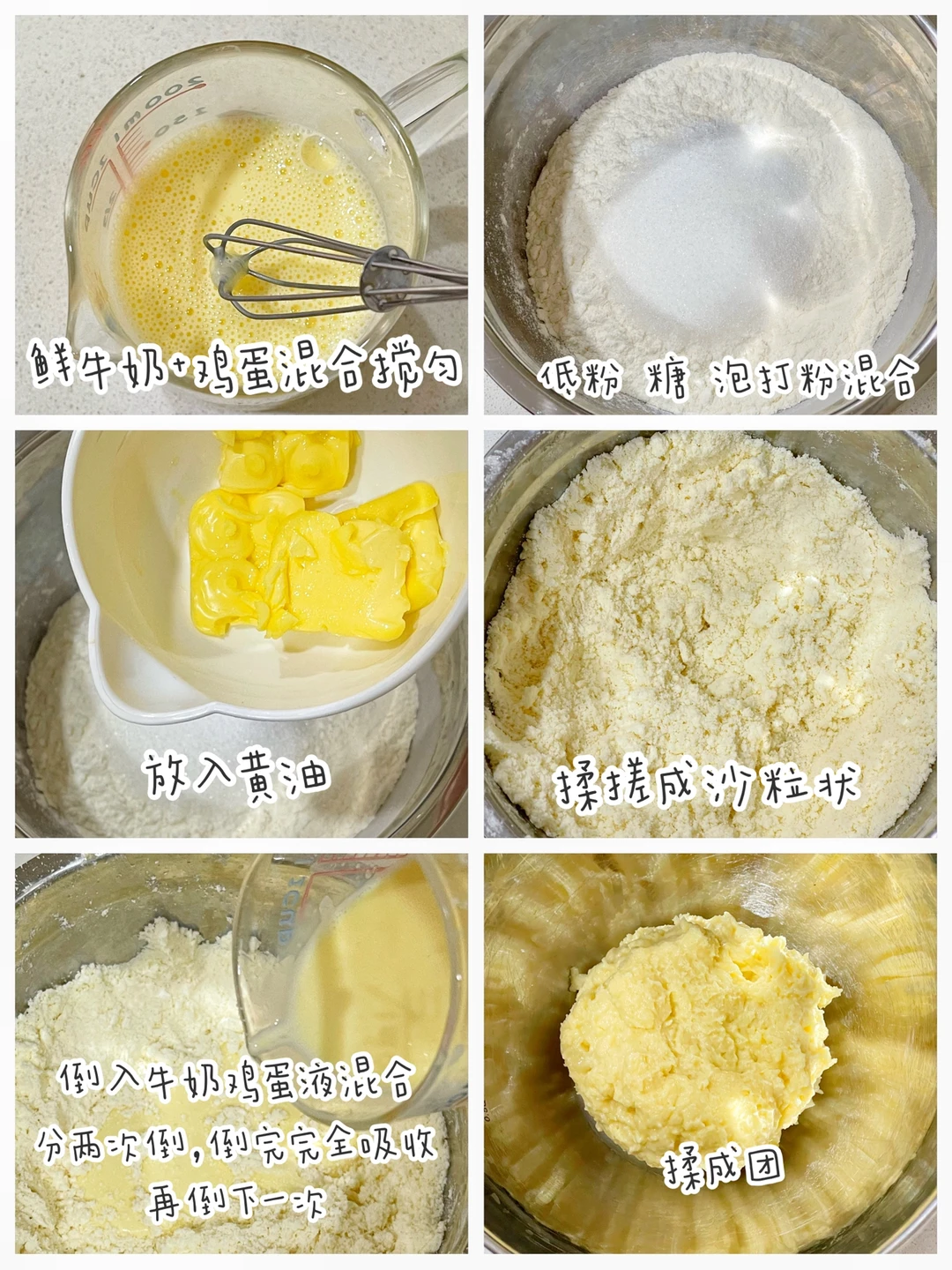🔹分2次倒入牛奶鸡蛋液,每次倒完待完全融合再倒下一次、揉成团。(❗️面粉的吸水性不一样,牛奶蛋液可根据实际情况调整倒入量)