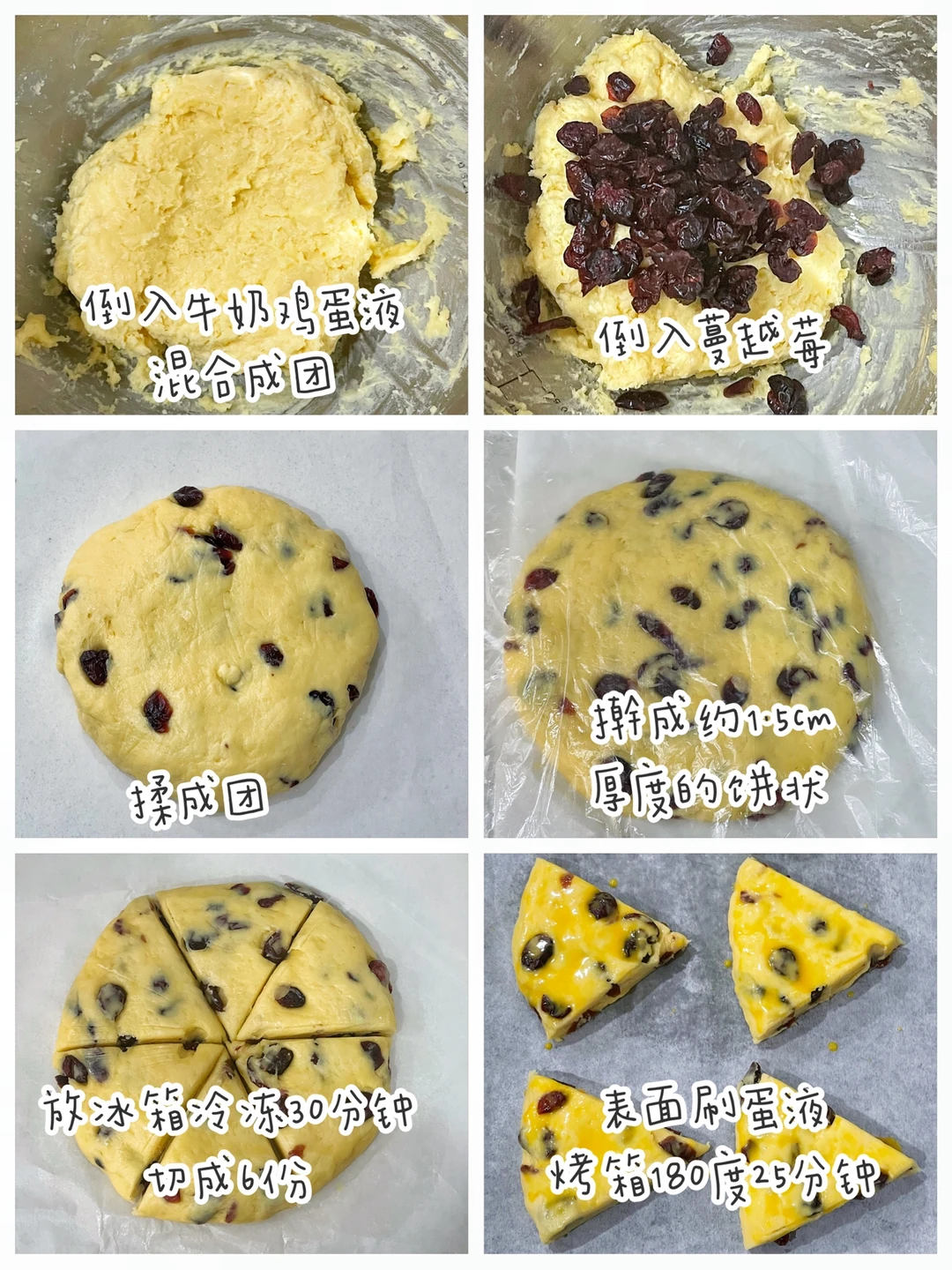 超好吃的蔓越莓司康,外酥里软,今天安排了低糖版,适合全家老小,做法也很简单,无需打发揉面,烘焙小白也可以放心去做~[赞R]