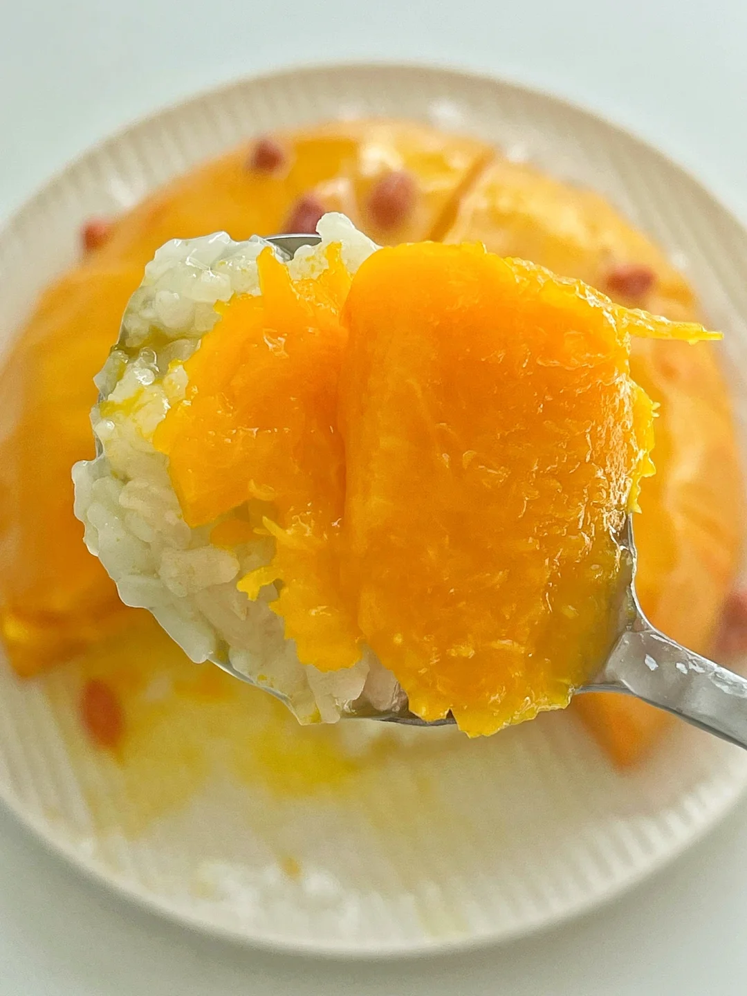 分享一款好看好吃寓意又好的年夜饭甜品菜谱,南瓜糯米饭寓意金玉满堂. 做法也很简单哦,厨房小白年三十儿那天也可以大胆露一手[偷笑R]