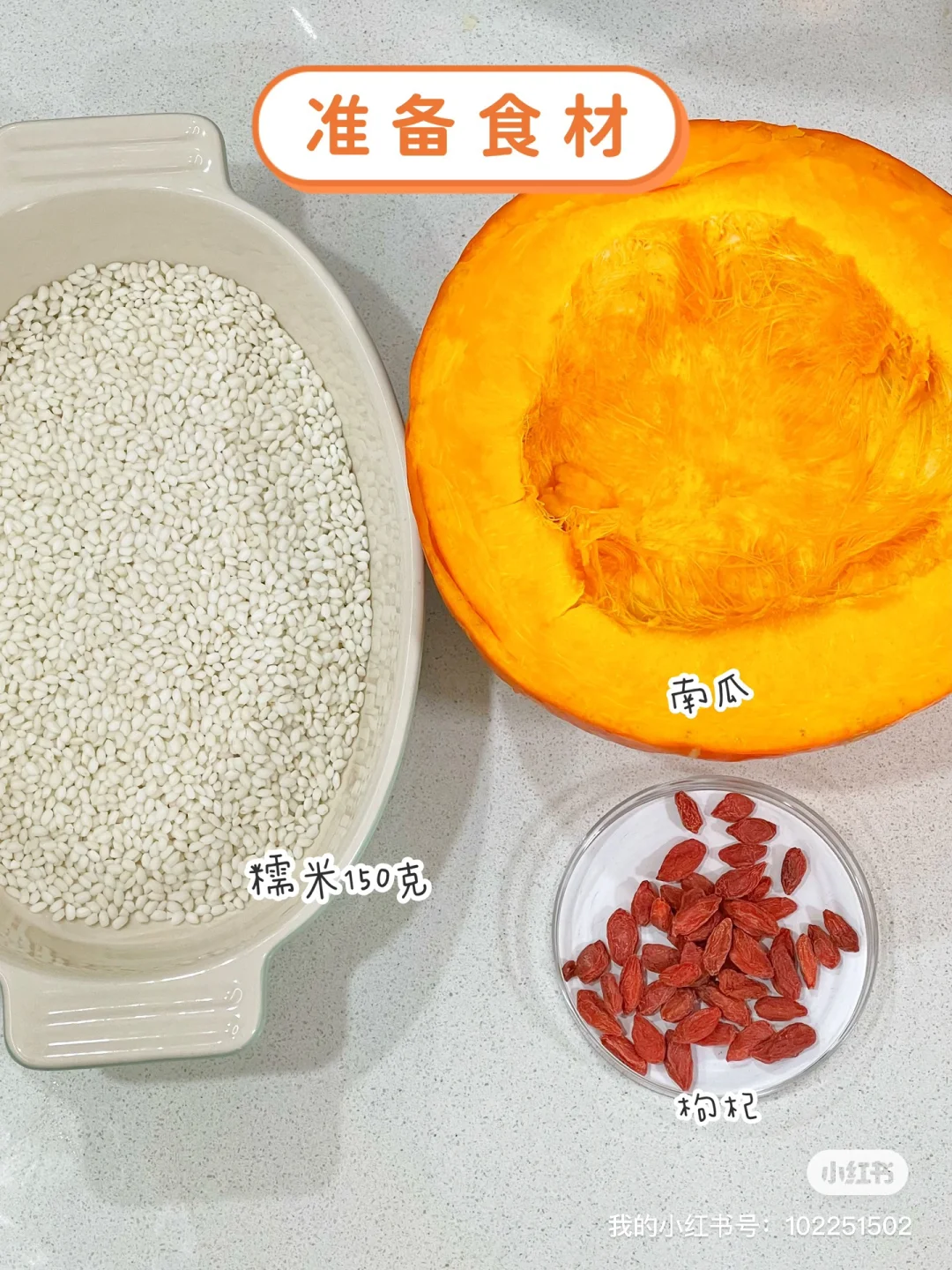 ✅准备食材:南瓜200克 、糯米150克、适量枸杞