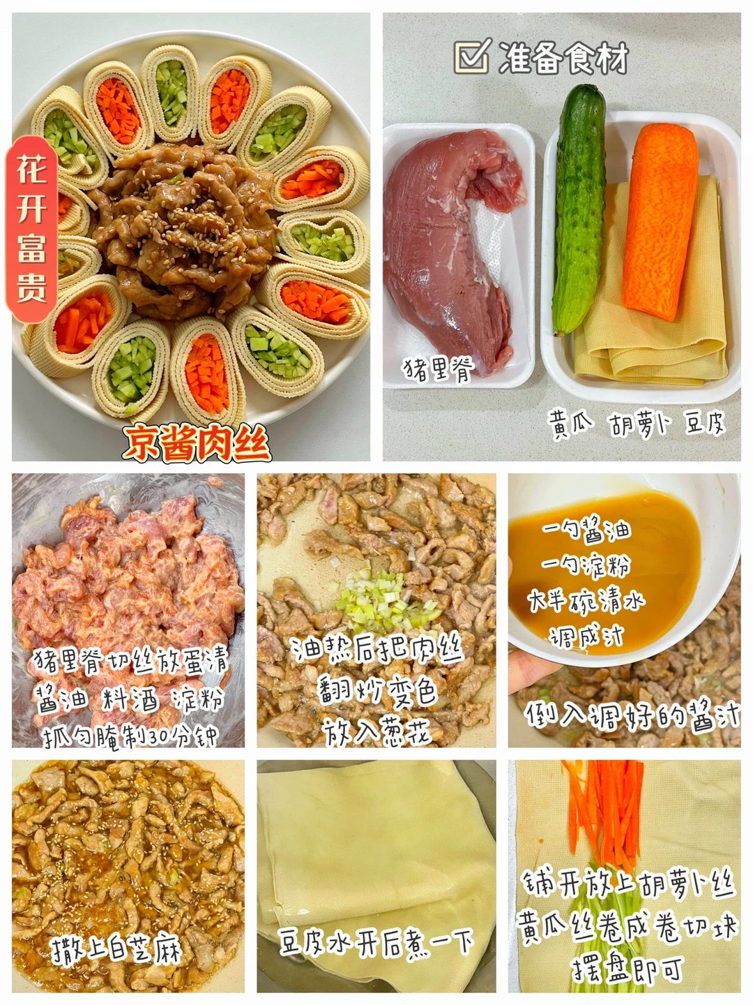 🔹食材:猪里脊、胡萝卜、黄瓜、豆皮。
