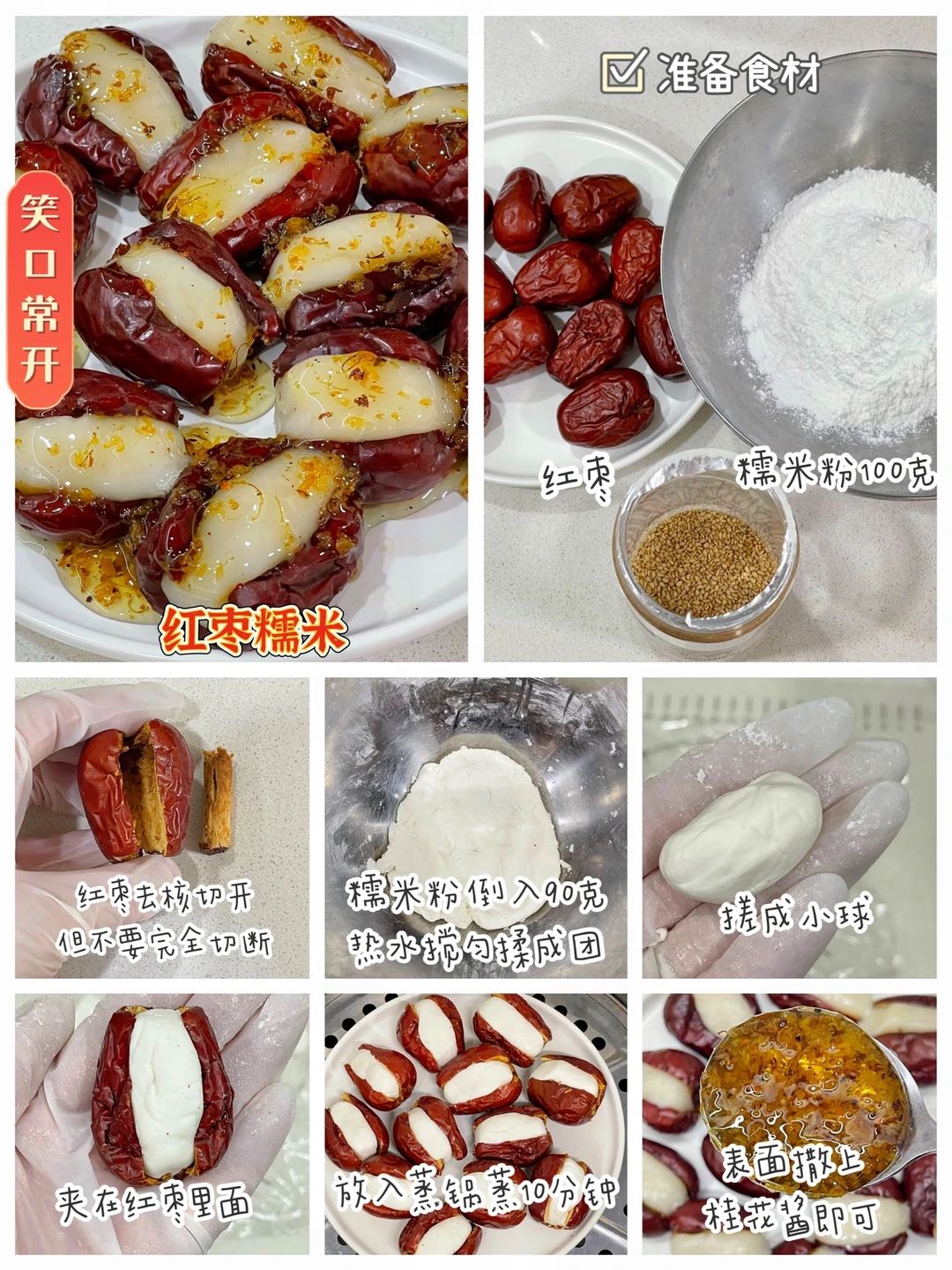 🔹食材:红枣、糯米粉100克、白芝麻或者桂花酱