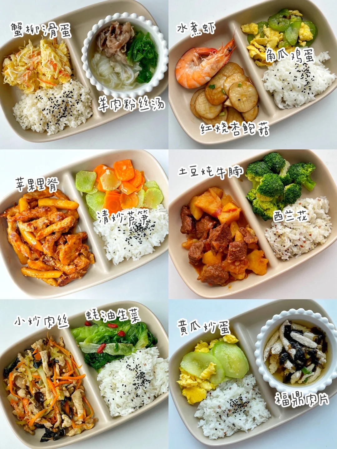 1. 蟹柳滑蛋、羊肉粉丝汤、米饭