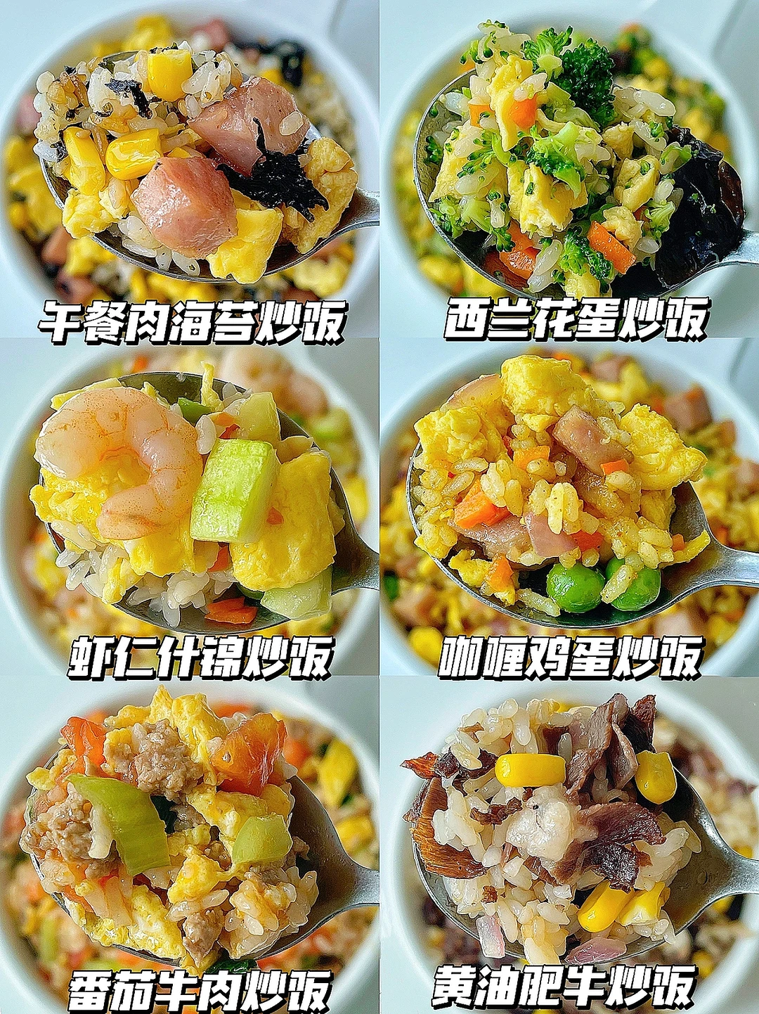 今天分享6款巨好吃的炒饭做法,有菜有肉有蛋有饭,每口下去都营养满满,保证宝宝爱吃到光盘。