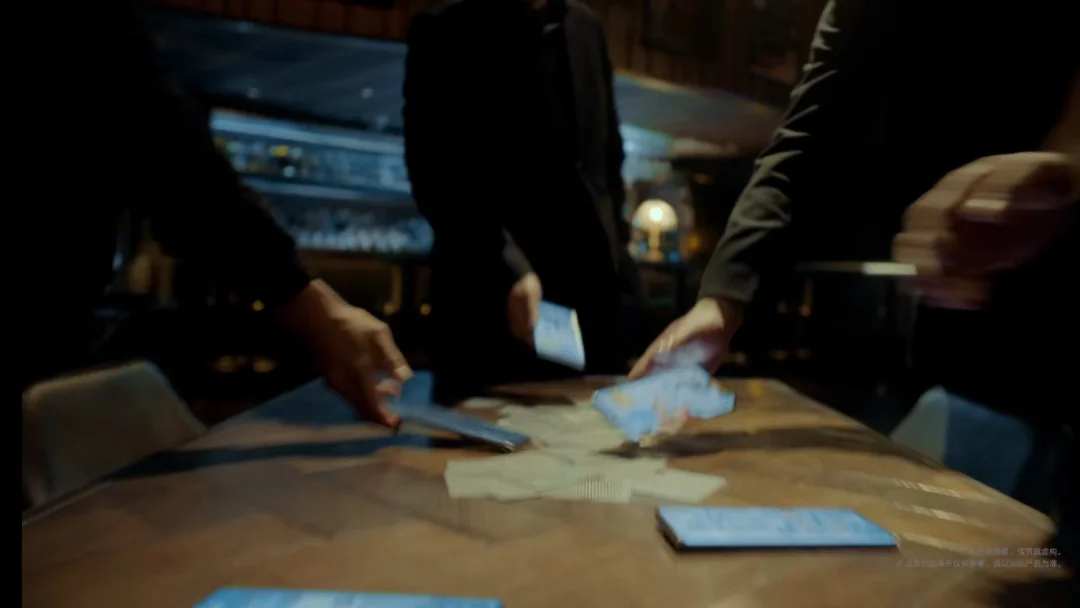 荣耀这个广有意思,一群黑道抓内鬼,把手机都交出来,查。主角手机放一边,一旦用手去拿岂不是就曝光了,于是他用笔记本轻松控制手机删除了文件和记录,化解了危机。体现了危机时刻智慧互联的作用,说笔记本又不明说笔记本,广就该如此