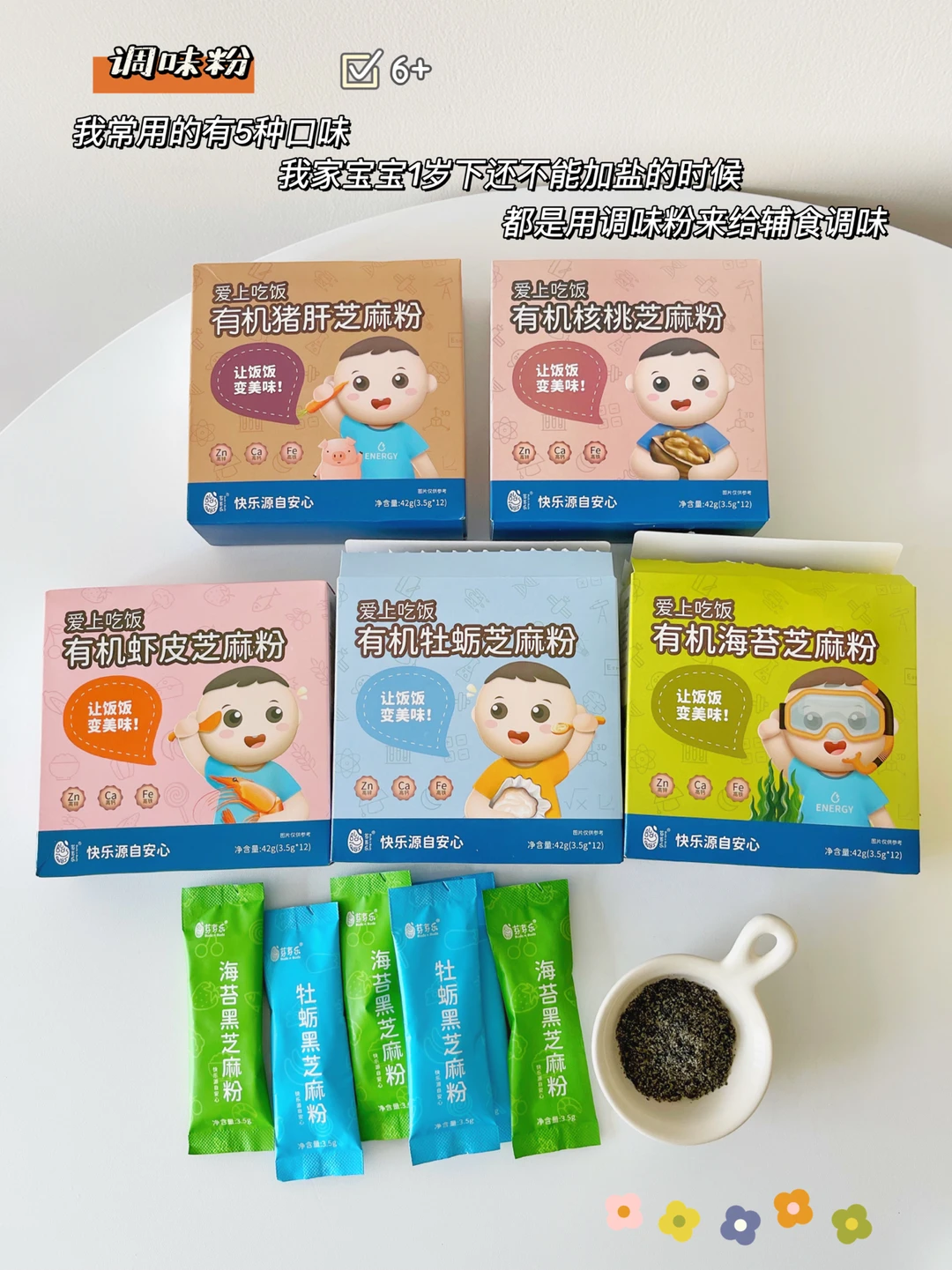 🔹都是新鲜食材磨制而成,1岁下宝宝还不能加盐的时候,可以用各种调味粉给宝宝来调味,可增加宝宝食欲。