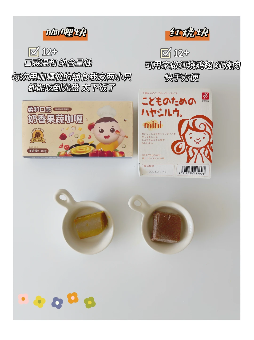 🔹口感温和、纳含量低、无添加色素、防腐剂,更适合宝宝。感觉用咖喱块做什么宝宝都爱吃,太下饭了。