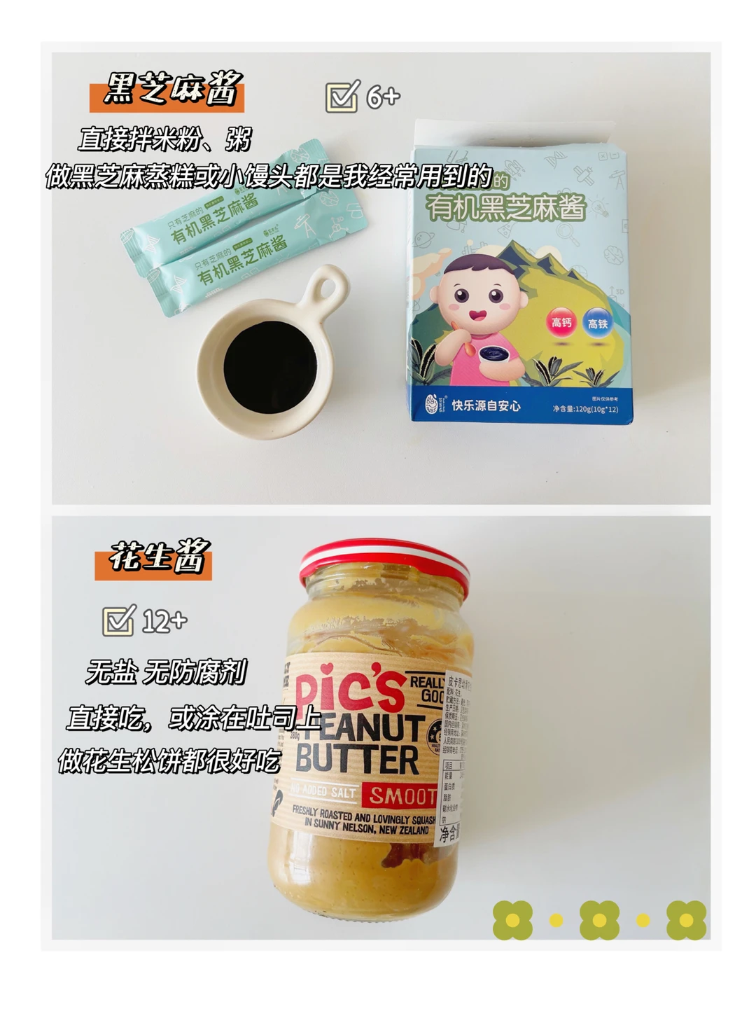 🔹芝麻酱补钙小能手,我们家宝宝是10月份的时候给添加的,直接用来拌米粉、粥,或者做黑芝麻蒸糕和小馒头都是经常用得到的.