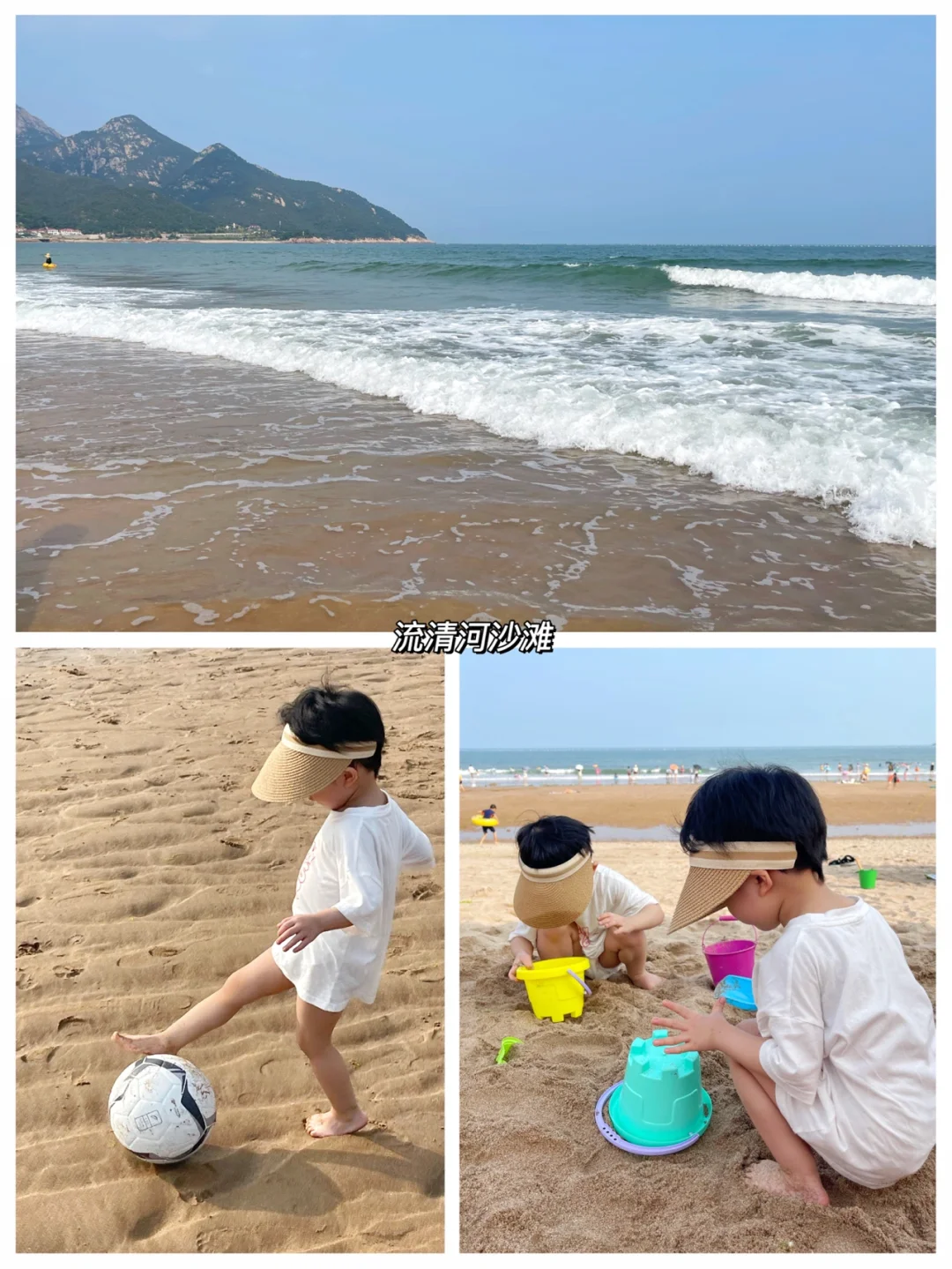 沙滩的沙子要比市区石老人、第一海水浴场要细很多,重点是人少,可以在沙滩支帐篷。还可以和宝宝来个沙滩足球[斜眼R]