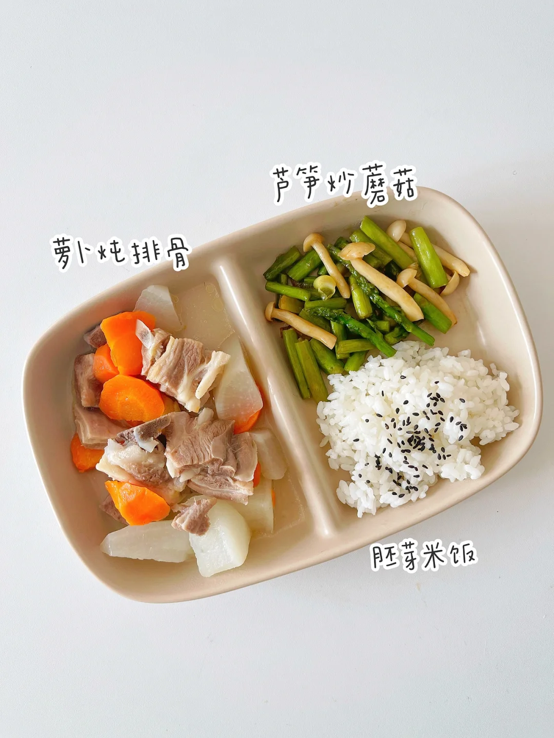 ✅周二:白萝卜炖排骨、芦笋炒蘑菇、米饭