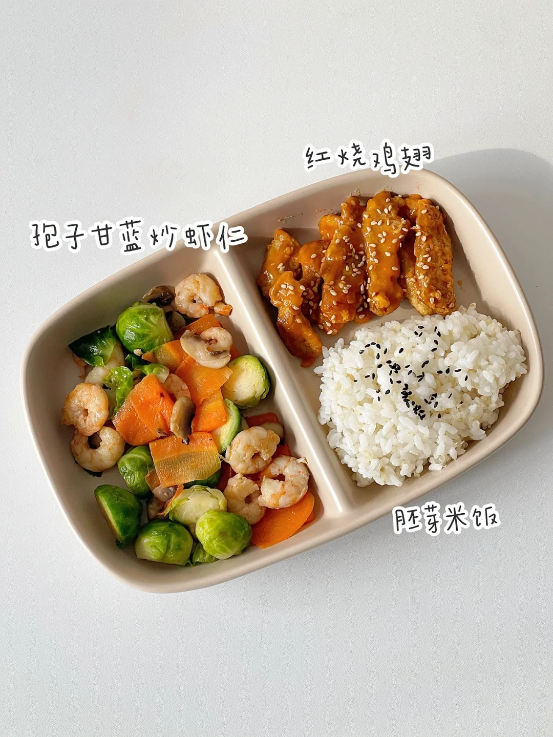 ✅周四:孢子甘蓝炒虾仁、红烧鸡翅、米饭
