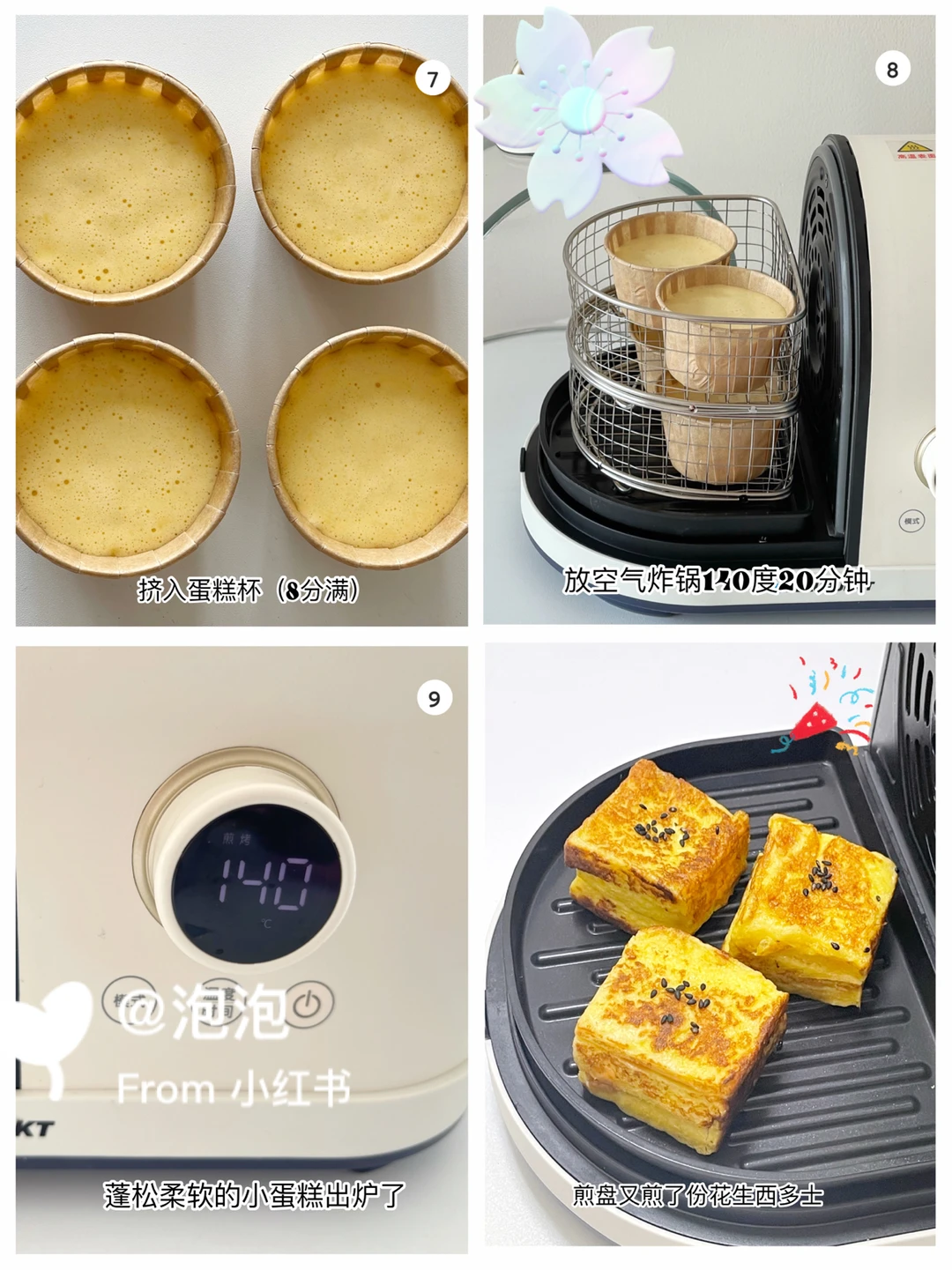 今天分享的小蛋糕是空气炸锅和烤箱都可以做的哦,口感松软,我家两小只超级捧场,同时还做了一款花生酱的西多士,我们娘仨的下午加餐都安排妥妥的。