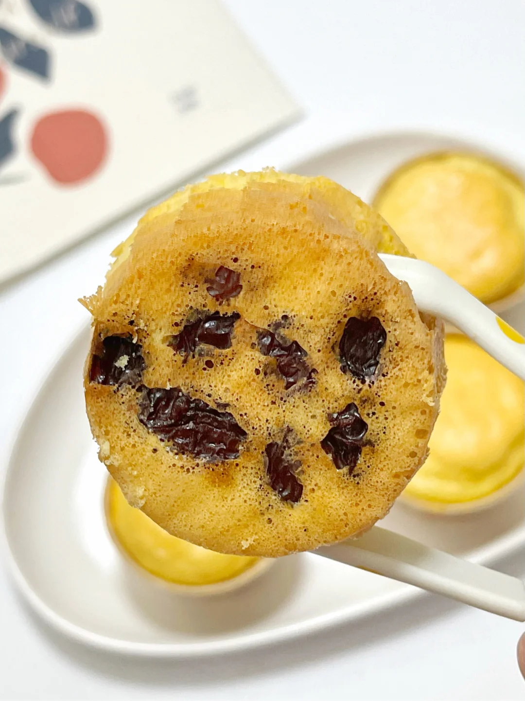 🔹蛋糕杯底部放入葡萄干,挤入蛋糕糊(八分满就可以)。