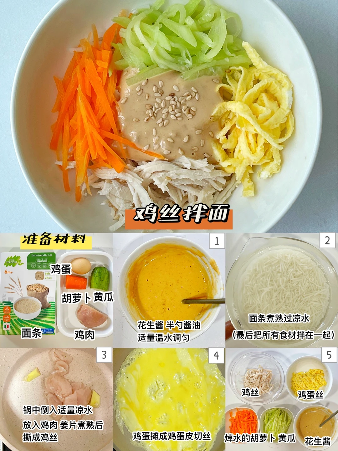 🔹食材:鸡肉、胡萝卜、黄瓜、鸡蛋、小皮面条
