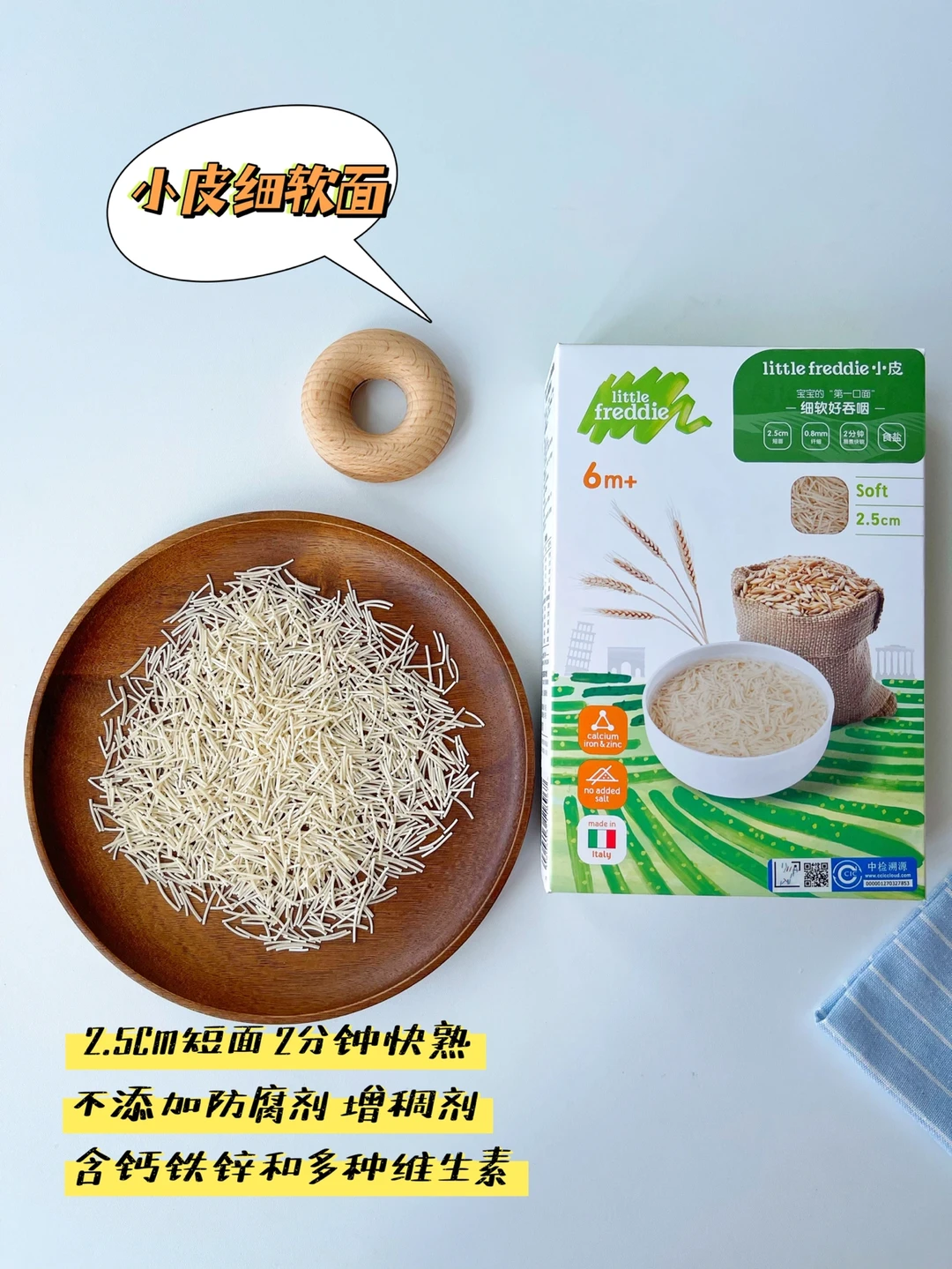 ❤️面条辅食我家两小只一直在吃的小皮婴幼儿细软面,面条长2.5 cm,2分钟就可以煮熟,口感绵软,非常适合宝宝吞咽。除了原味还有很多蔬菜口味的,蔬菜含量9%~12%。宝宝面条最主要是不含盐,不含添加剂和防腐剂,宝宝吃的更放心。