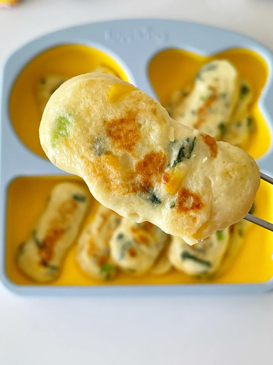 🔹锅中刷油,油热后挤入调好的山药面糊,大小根据宝宝适合抓握的就可以,中小火两面煎至金黄熟透即可。