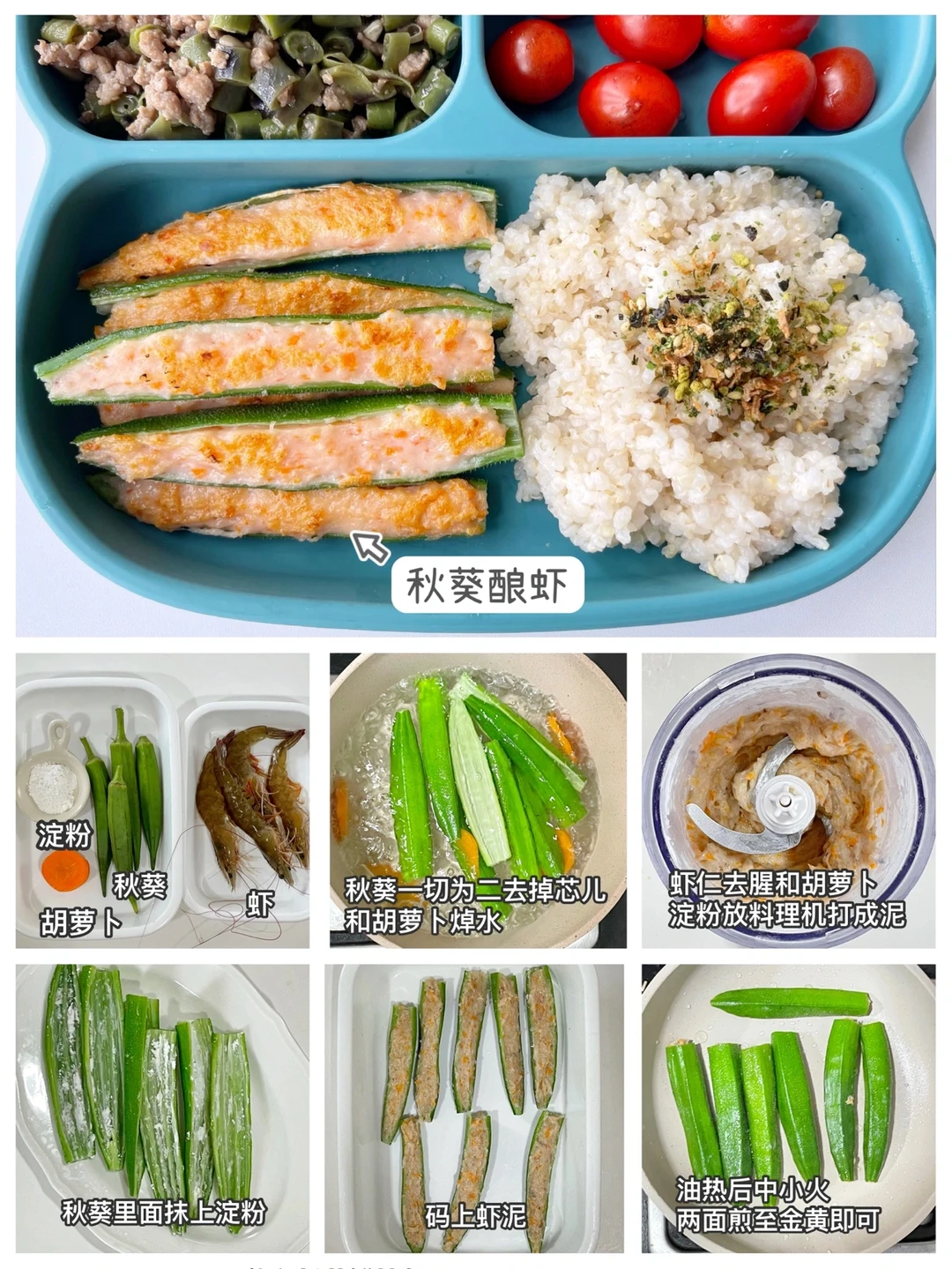 ✅周五:秋葵酿虾、肉沫炒豆角、米饭