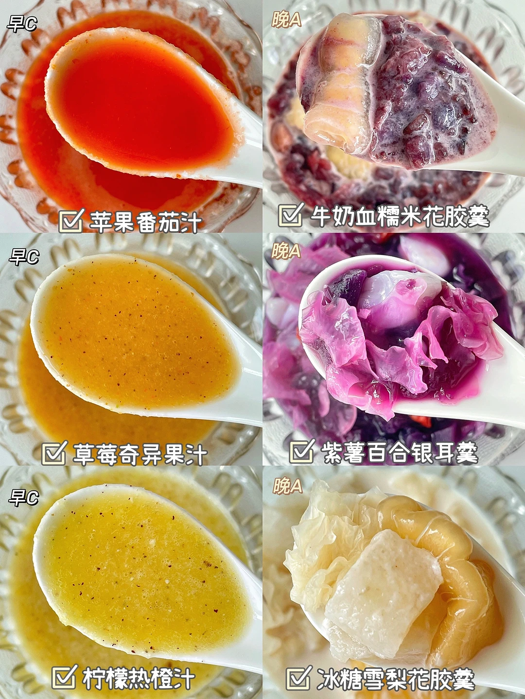 今天分享一期早C晚A的果蔬汁和甜汤系列,每款都好好吃,而且营养满满[斜眼R]