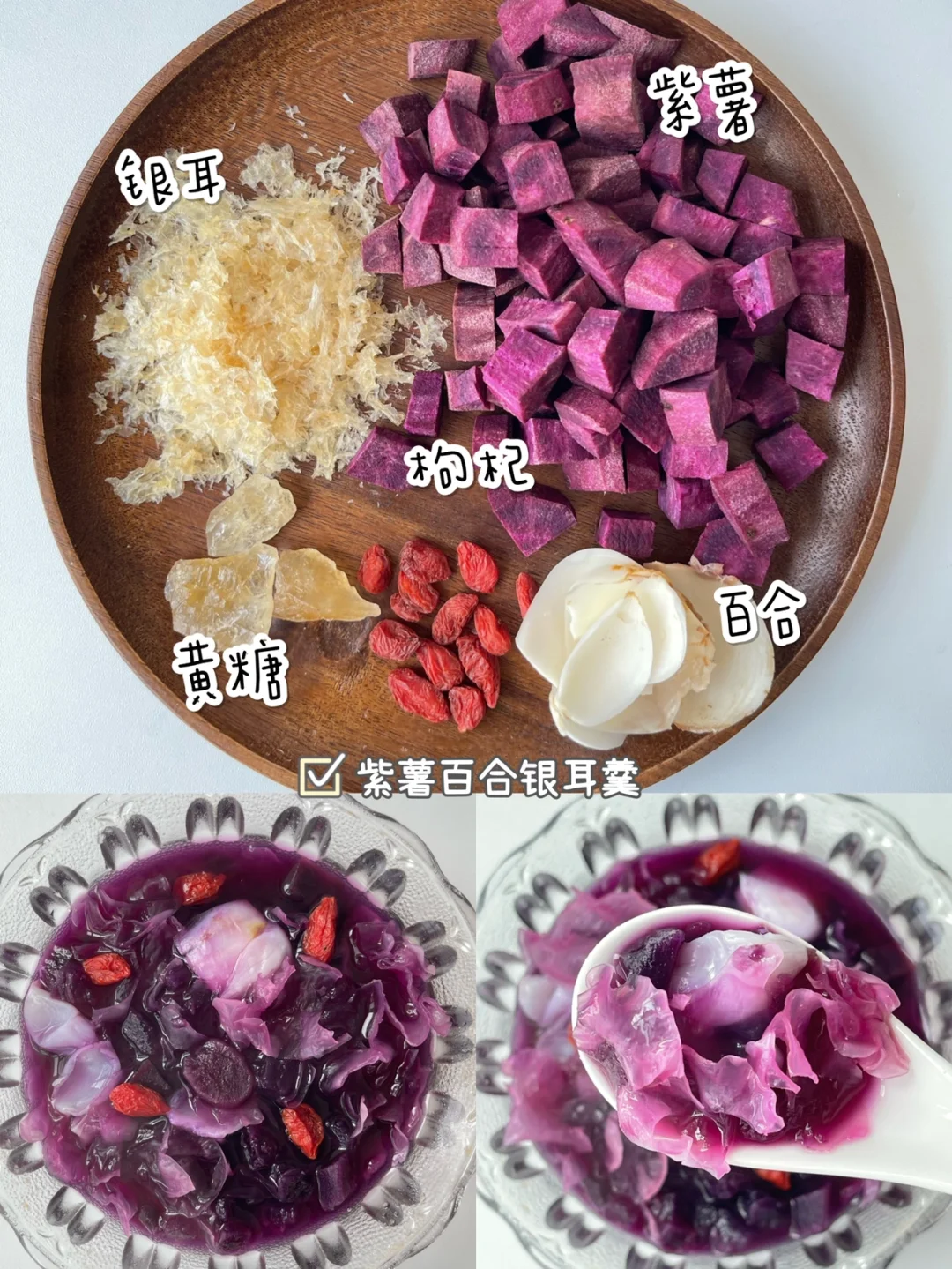 🔹紫薯百合银耳羹