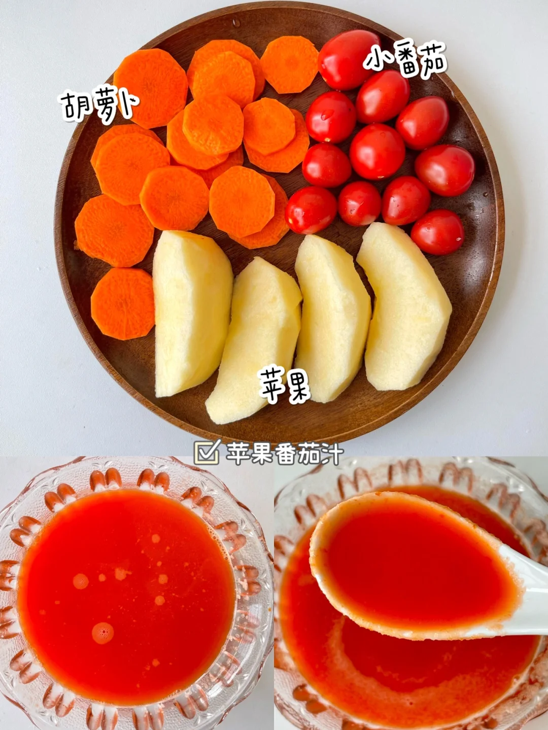🌟食材:苹果半个、小番茄10颗左右、胡萝卜半根,