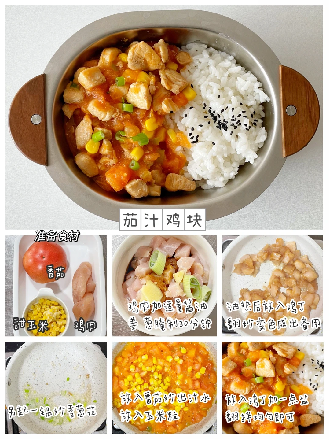 🔹另起一锅炒葱花,放入番茄炒出汁水,放入玉米、鸡丁翻炒均匀,加一点盐调味即可。