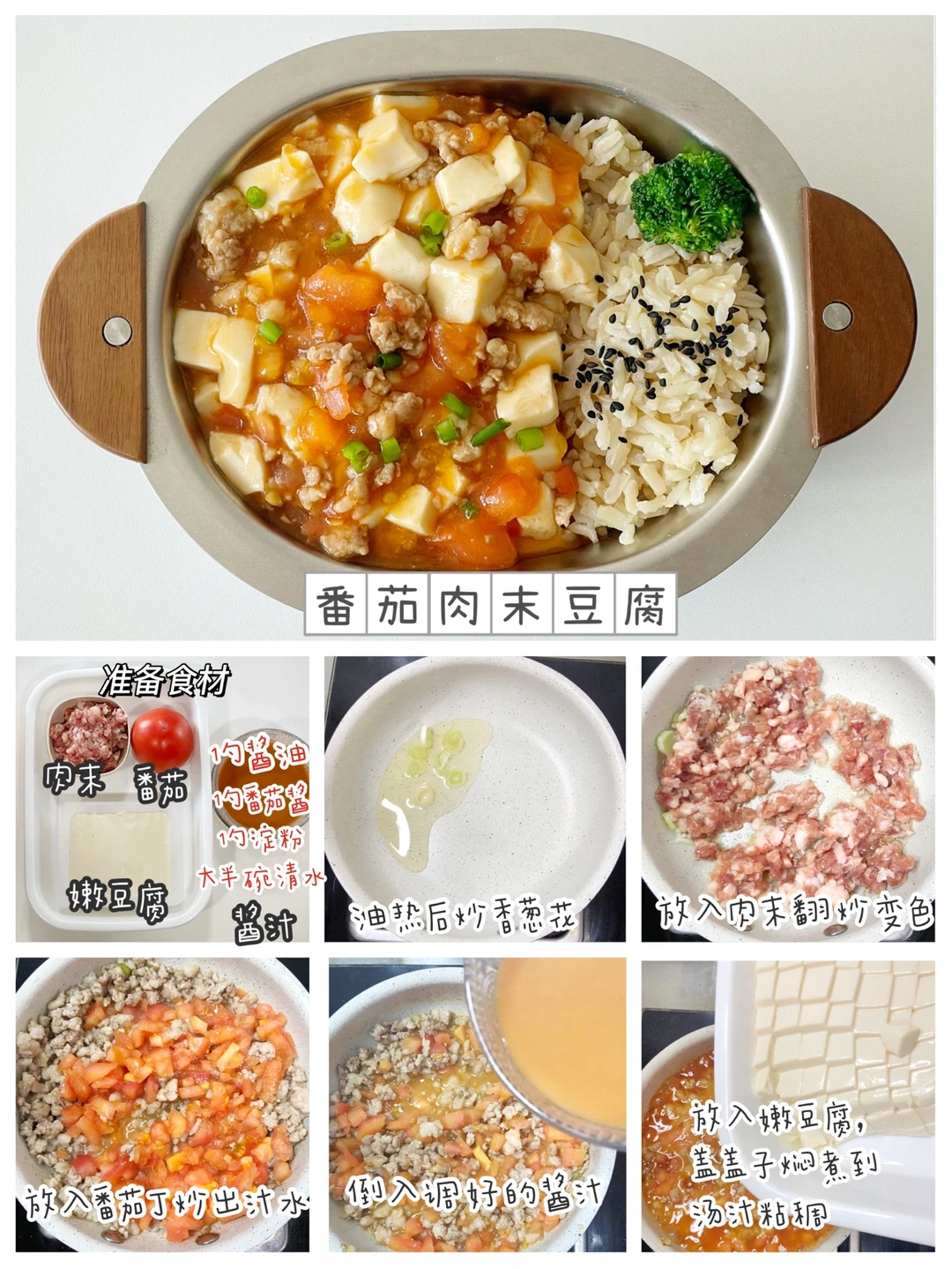 🔹锅中油热后炒香葱花,放入肉末翻炒变色,倒入番茄炒出汁水,倒入酱汁,同时放入嫩豆腐,盖上盖子焖煮到汤汁粘稠即可。
