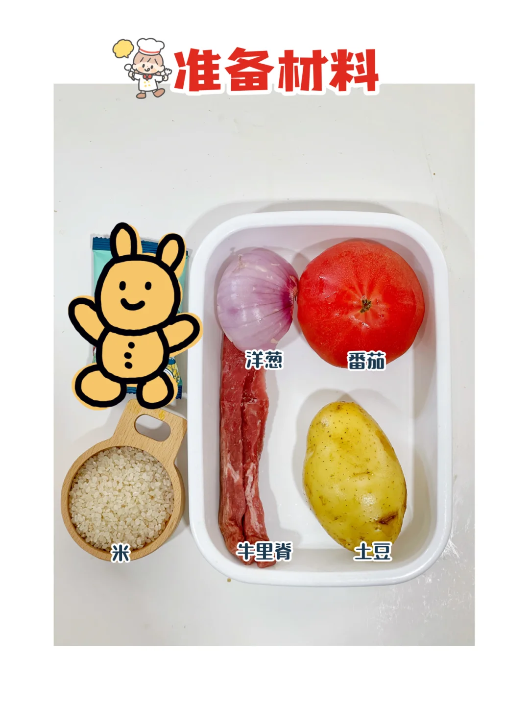 ✅准备材料:牛肉、番茄、土豆、洋葱。