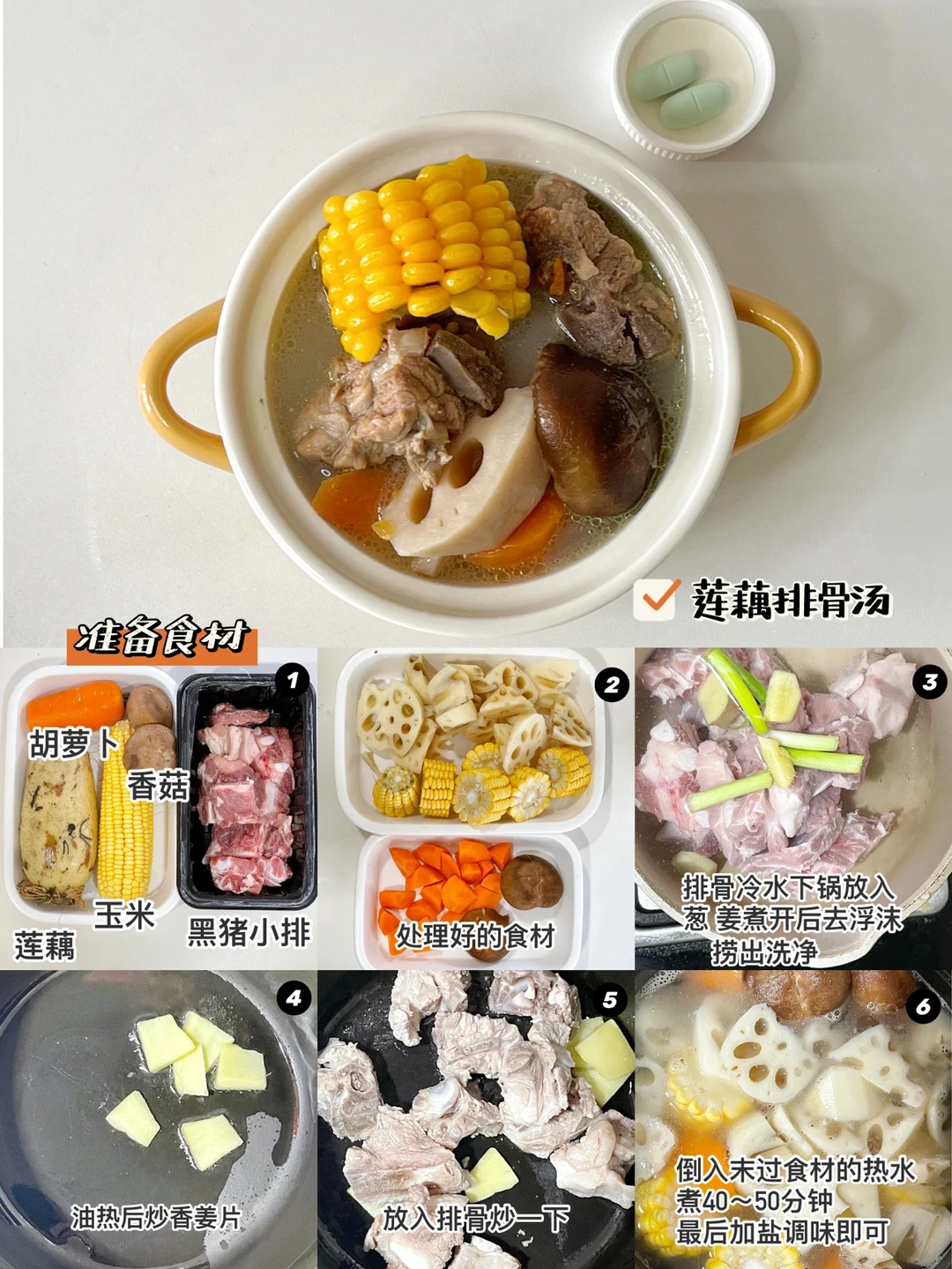 🔹食材:小排、莲藕、胡萝卜、玉米、香菇