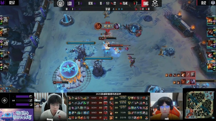 中期厄塔汗团战双方打野互换,Moham妮蔻大招开LGD三人但送掉自己人头,Starry卡莎抢掉厄塔汗后双杀Sav1or+Ycx,OMG打2换3,双方经济持平。