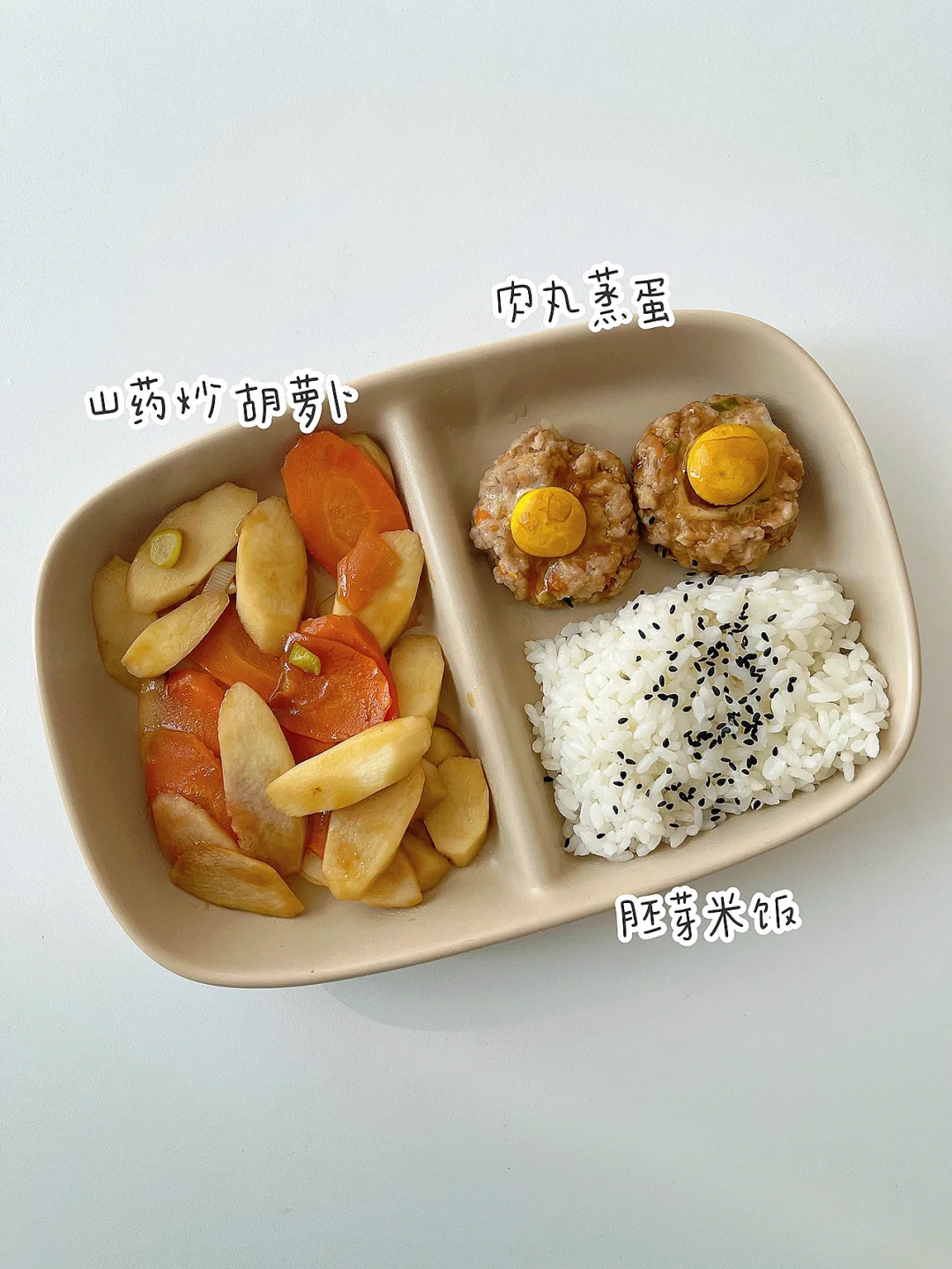 ✅周四:肉丸蒸蛋、山药炒胡萝卜、胚芽米饭