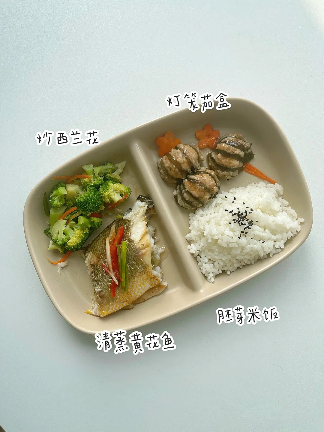 ✅周二:清蒸黄花鱼、灯笼茄盒、炒西兰花、胚芽米饭