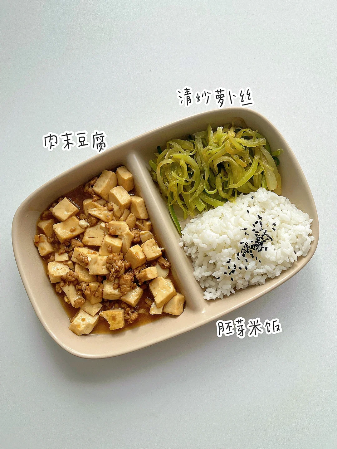 ✅周五:肉末豆腐、清炒萝卜丝、胚芽米饭