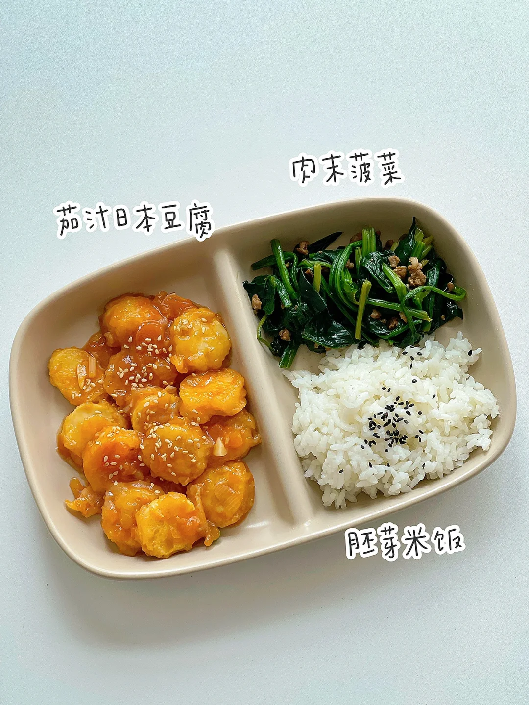 ✅周三:茄汁日本豆腐、肉末菠菜、胚芽米饭