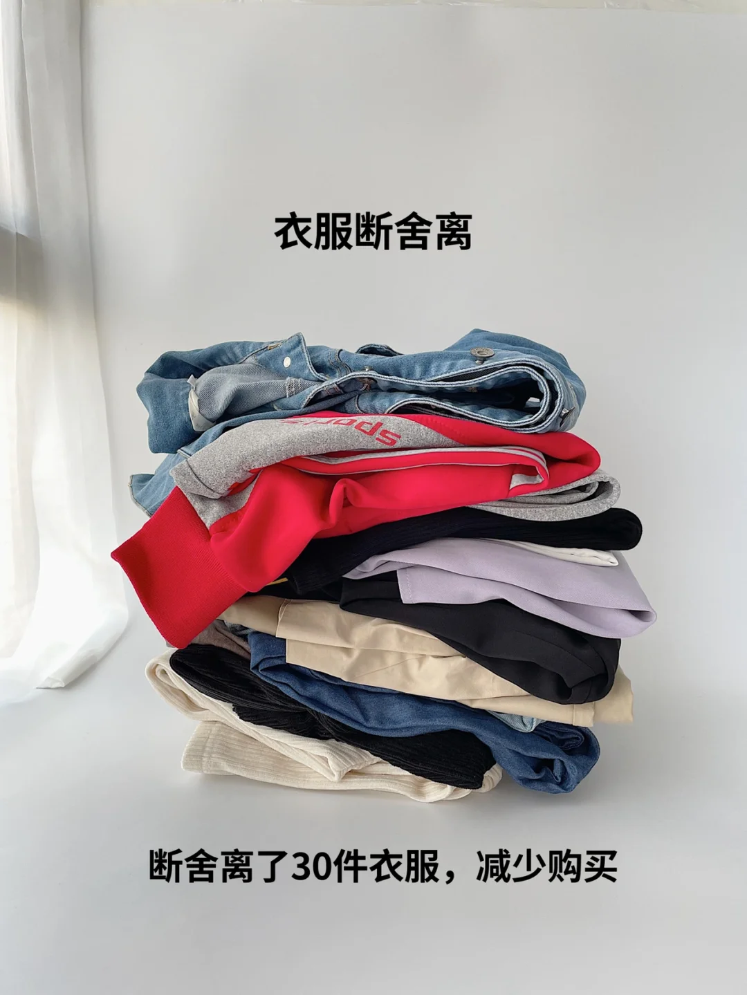 衣橱方面,我断舍离了30多件不再穿、少穿的衣服。根据个人审美和衣服心动程度来个断舍离。《一日一舍》中的作者只有12件衣服,断舍离之前我单单衬衫就有12件,虽不模仿,但看到堆放的衣服,极简的我还是选择了断舍离。