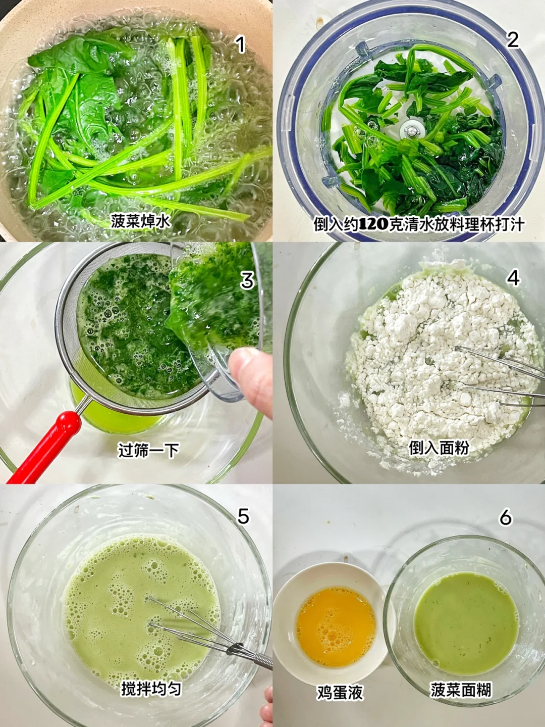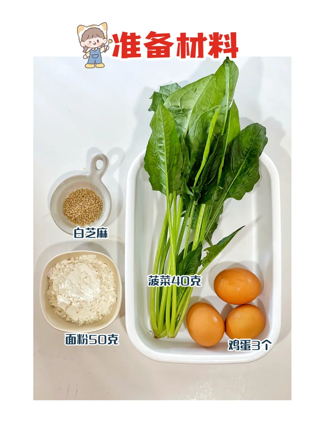 香喷喷的菠菜鸡蛋饼,好吃又营养。口感软软的,适合10月以上的宝宝们。 ✅准备材料:菠菜40克,鸡蛋3个,面粉50克,白芝麻适量。 ⬇️制作方法:⬇️ 🔹菠菜焯水,加约120克清水打成菠菜汁,过筛一下。 🔹加入1个鸡蛋和面粉搅拌均匀,菠菜面糊就调好了(1岁加的宝宝可加一丢丢盐进去)。 🔹余下两个鸡蛋打成鸡蛋液备用。 🔹平底锅刷油,油热后,先舀入一勺菠菜面糊,待表面微微干的时候,再在表面舀入一勺鸡蛋液,表面撒点芝麻。中小火两面煎熟即可。