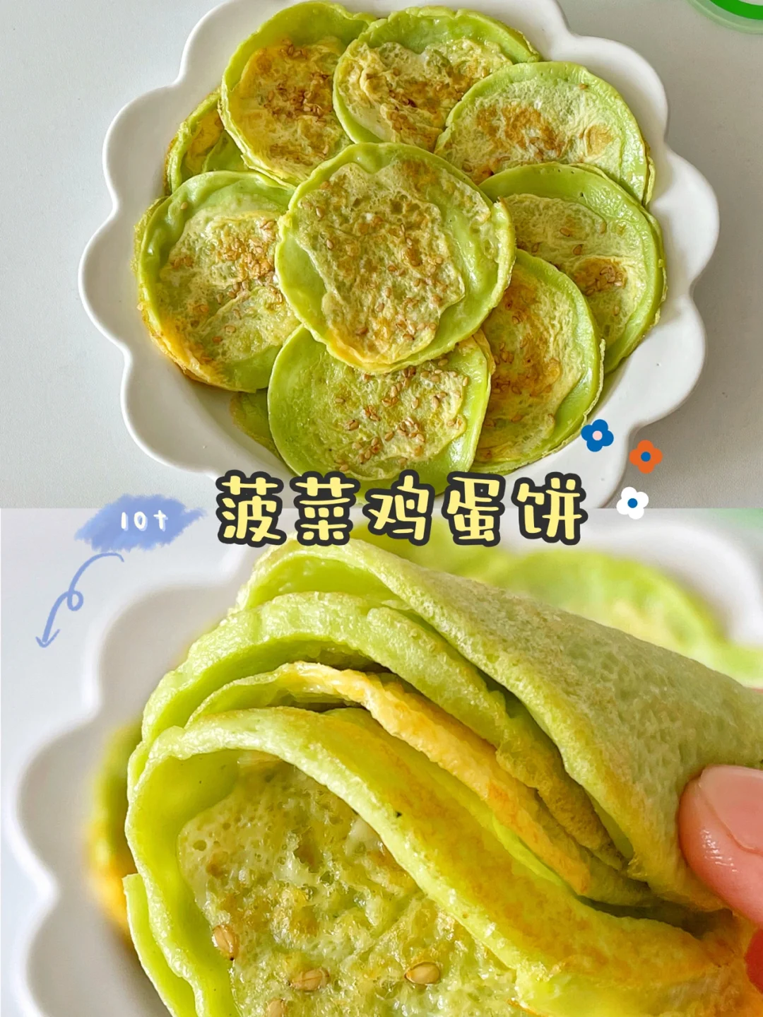 宝宝辅食10+早餐饼|菠菜鸡蛋饼 软fufu