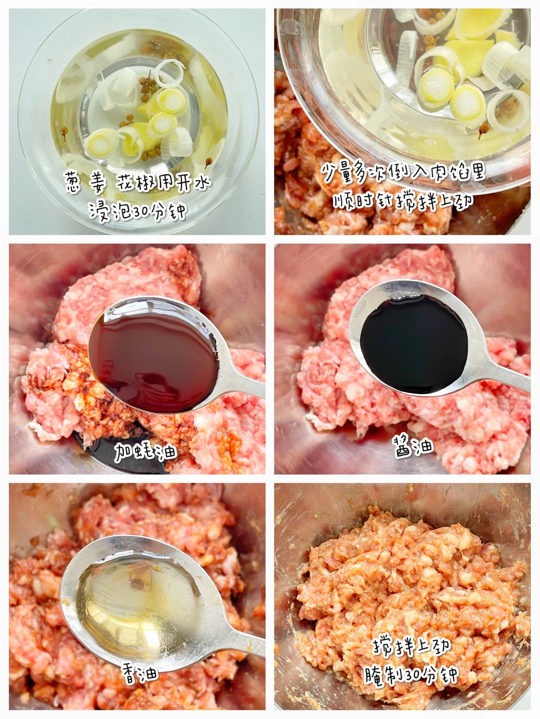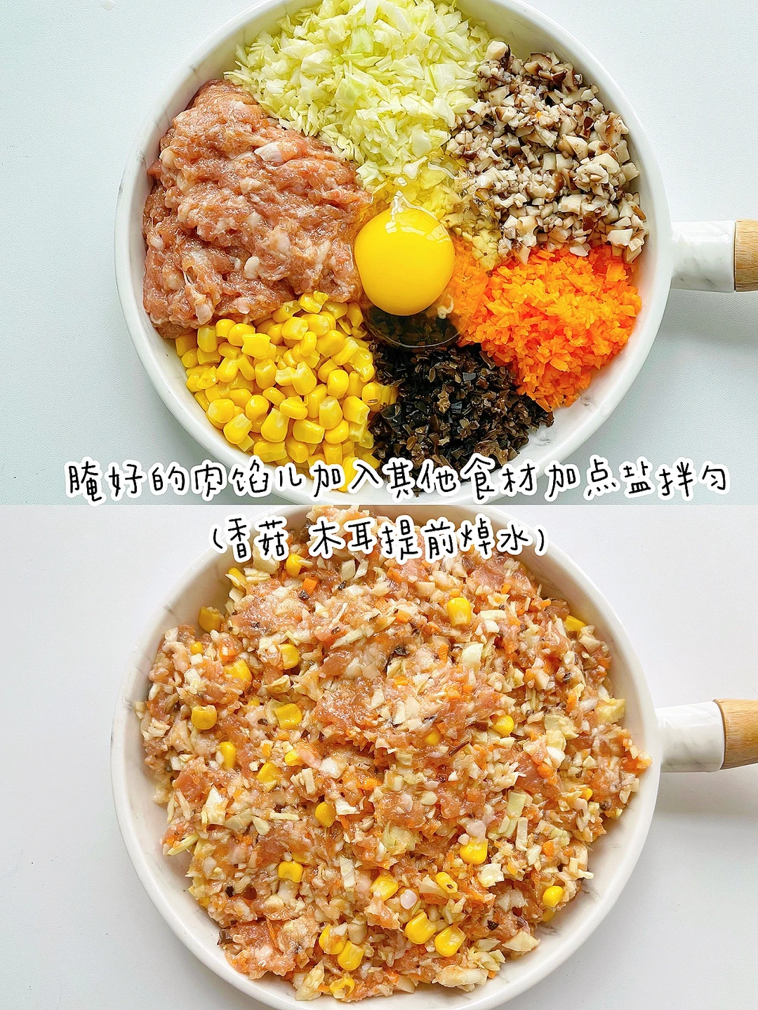 过了小年就是年,马上就到年三十儿了,想好晚上吃啥馅儿的饺子了吗[偷笑R]今天就来分享一款巨好吃,巨鲜美的饺子馅儿搭配[斜眼R] ✅准备食材:肉末、包菜、胡萝卜、玉米粒、香菇、木耳、鸡蛋一个。 ⬇️制作方法:⬇️ 🔹香菇、木耳焯水切碎末,包菜、胡萝卜切碎末。 🔹葱、姜、花椒用开水浸泡30分钟。少量多次的倒入肉馅里,顺时针搅拌上劲,加两勺酱油,一勺蚝油,适量的芝麻油顺时针搅拌均匀,腌制30分钟。 🔹腌制好的肉馅儿, 拌入其他所有食材,加一点盐拌匀就可以啦。 👍煮出来的饺子真的超香。