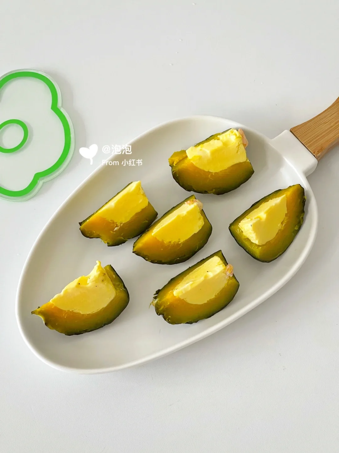 🔹贝贝南瓜洗净,切掉顶部上端,南瓜冷水上锅蒸15分钟。