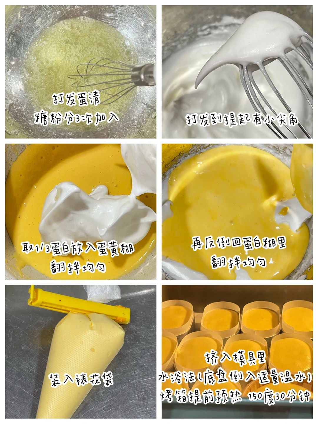 🔹放入提前约好的烤箱,用水浴法(底盘倒入适量的温水)150度30分钟即可.